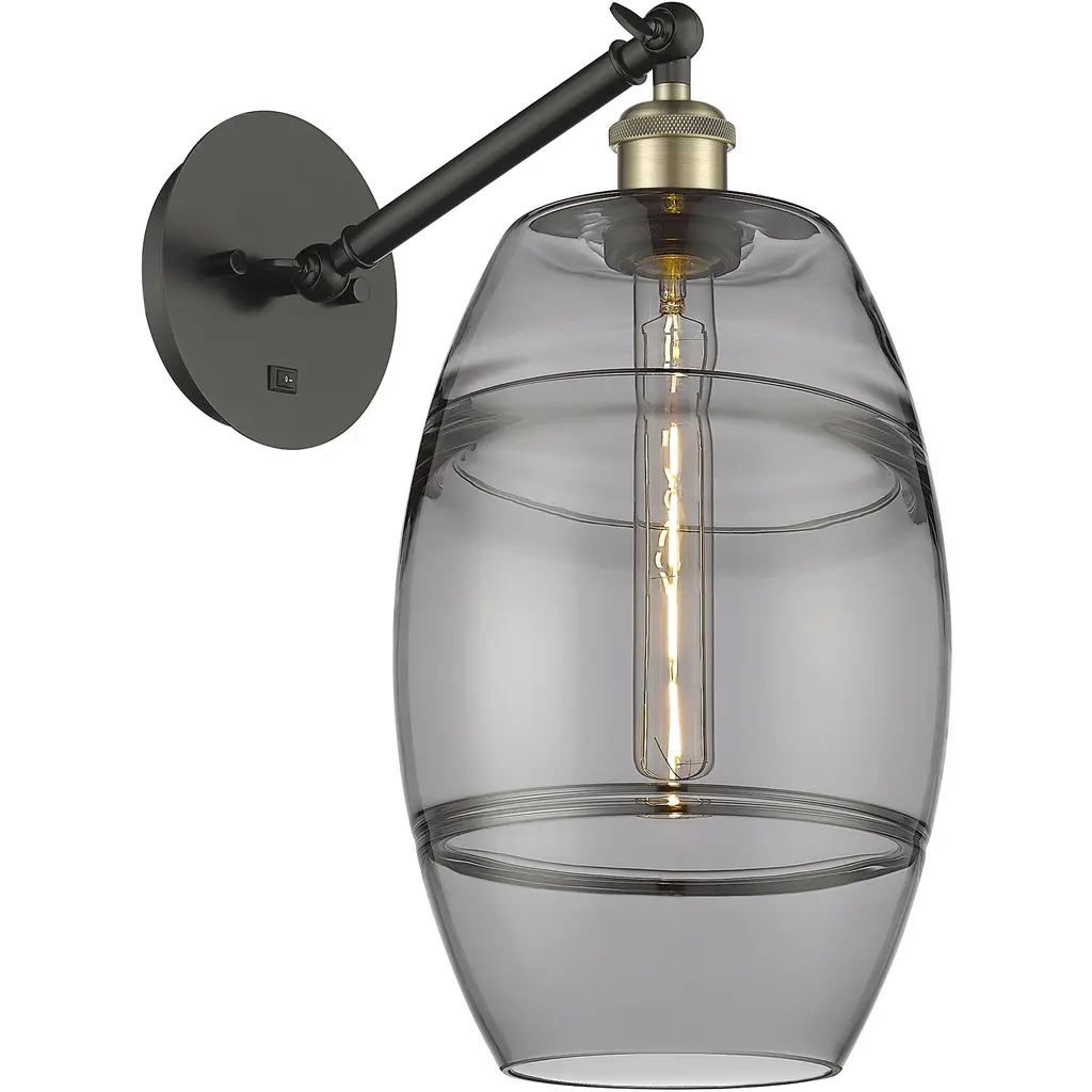 Ballston-Vaz 1-Light 8" Sconce, Arm Adjusts Up/down, Brushed Brass, Light Smoke