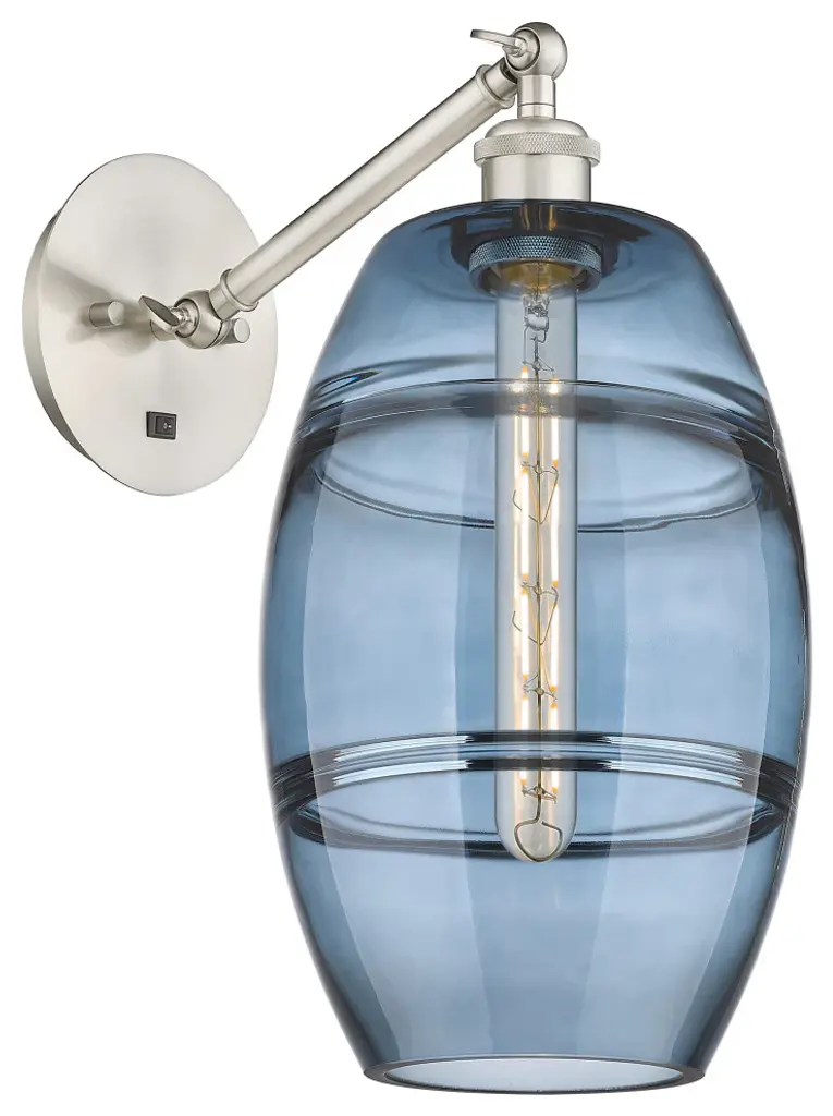 Ballston-Vaz 1-Light 8" Sconce, Arm Adjusts Up/down, Satin Gold, Princess Blue