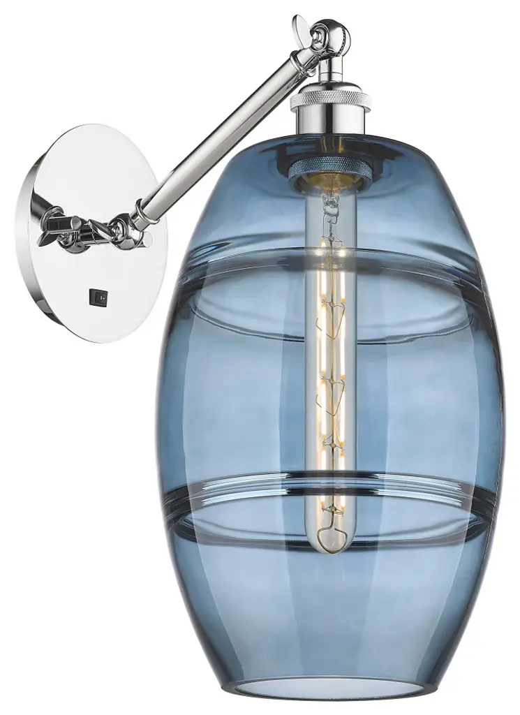 Ballston-Vaz 1-Light 8" Sconce, Arm Adjusts Up/down, Satin Nickel, Princess Blue