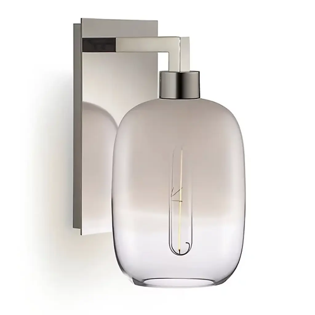 Add a unique touch of color to your space with the Balon Ombra Sconce from Niche. Hand-applied color over pristine handblown crystal glass creates a seamless and luxurious look. Paired with a Polished Nickel backplate, this wall sconce is a stunning addition to any room. Illuminate your home with elegance and sophistication. Highlights