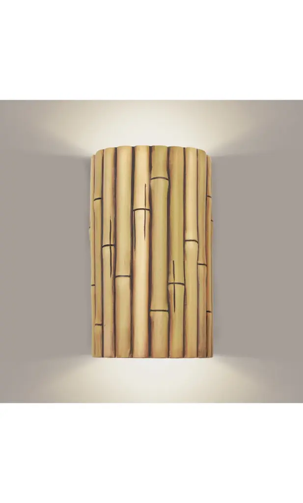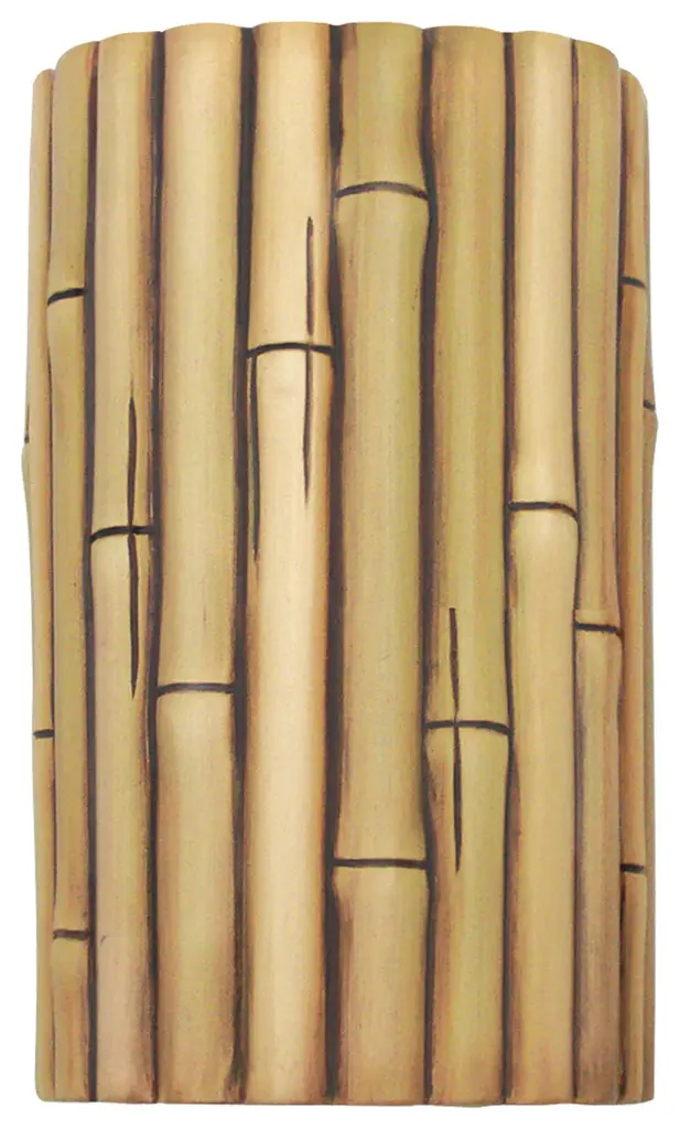 Whether you want to inspire the exotic, island fun of a Tiki bar or the cool serenity of a spa, this handcrafted ceramic Bamboo Wall Sconce in a Natural finish will set the right tone for your decor. Light shines from the top and bottom adding to the ambiance of any setting indoors or out.Standard Lamping: Uses (1) 100W E26 Medium Base A19 Bulb. (Bulb not included)Number of Bulbs: 1Watts per Bulb: 100Standard Base Type: E26Mounting Center: 4.75in.Country of Origin: U.S.A.Warranty: One year limited warrantyResistant to rust and corrosion. Suitable for indoor or outdoor damp locations.ADA Compliant.