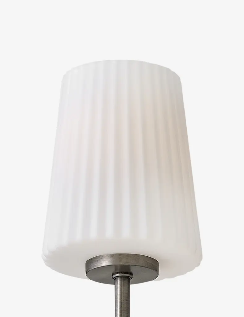 The Banbury Sconce blends timeless elegance with a modern touch. Pleated opal glass shades pair with slender, linear details, creating a refined silhouette. Mount as a sconce or vanity light to bring a touch of sophistication to any space.