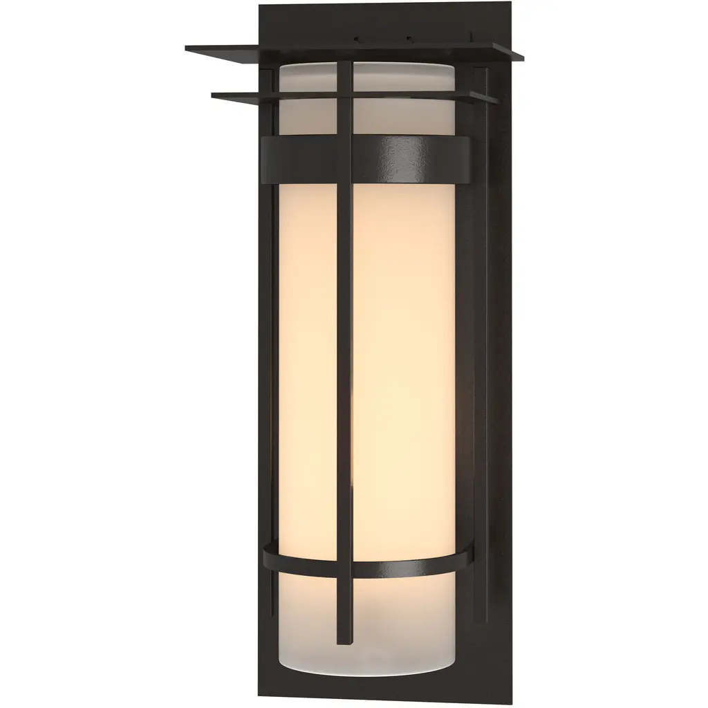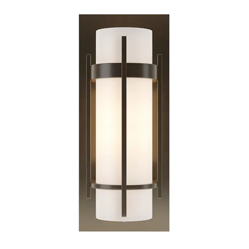 Sleek and aesthetically pleasing. These are keywords in describing the visual appearance of the Banded with Bars Wall Sconce by Hubbardton Forge yet functionality is also an important aspect in the prominence of this piece. The Banded’s most prominent aspect is its tall, cylindrical glass diffuser that houses the internal lamping. These two aspects work together to produce a warm and comforting light. For added durability, the piece also utilizes a textured and forged-steel mounting plate.