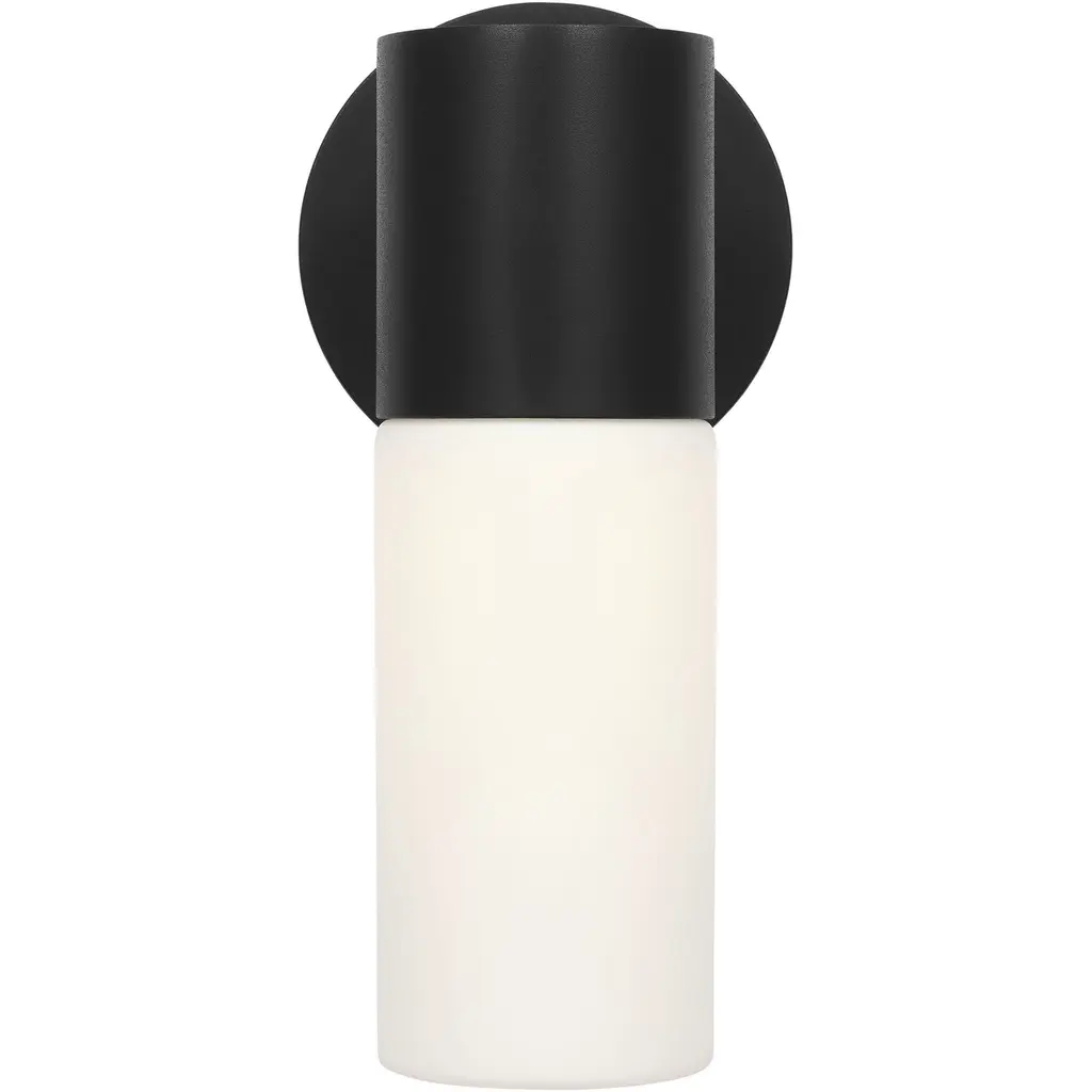 Showcasing bold cylindrical and conical forms, the Focal sconces by Barbara Barry create a discrete yet impactful statement. The textured black finish contrasts elegantly with white glass to create a classic aesthetic thats as versatile as it is modern. The sconces can be styled as pairs or multiples, flanking doorways and beds, or lining a corridor or stairway.