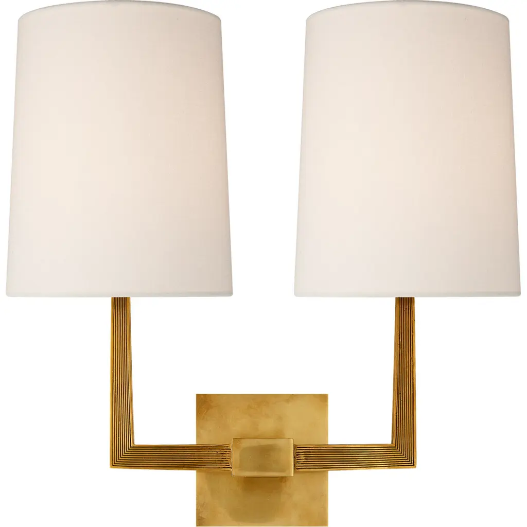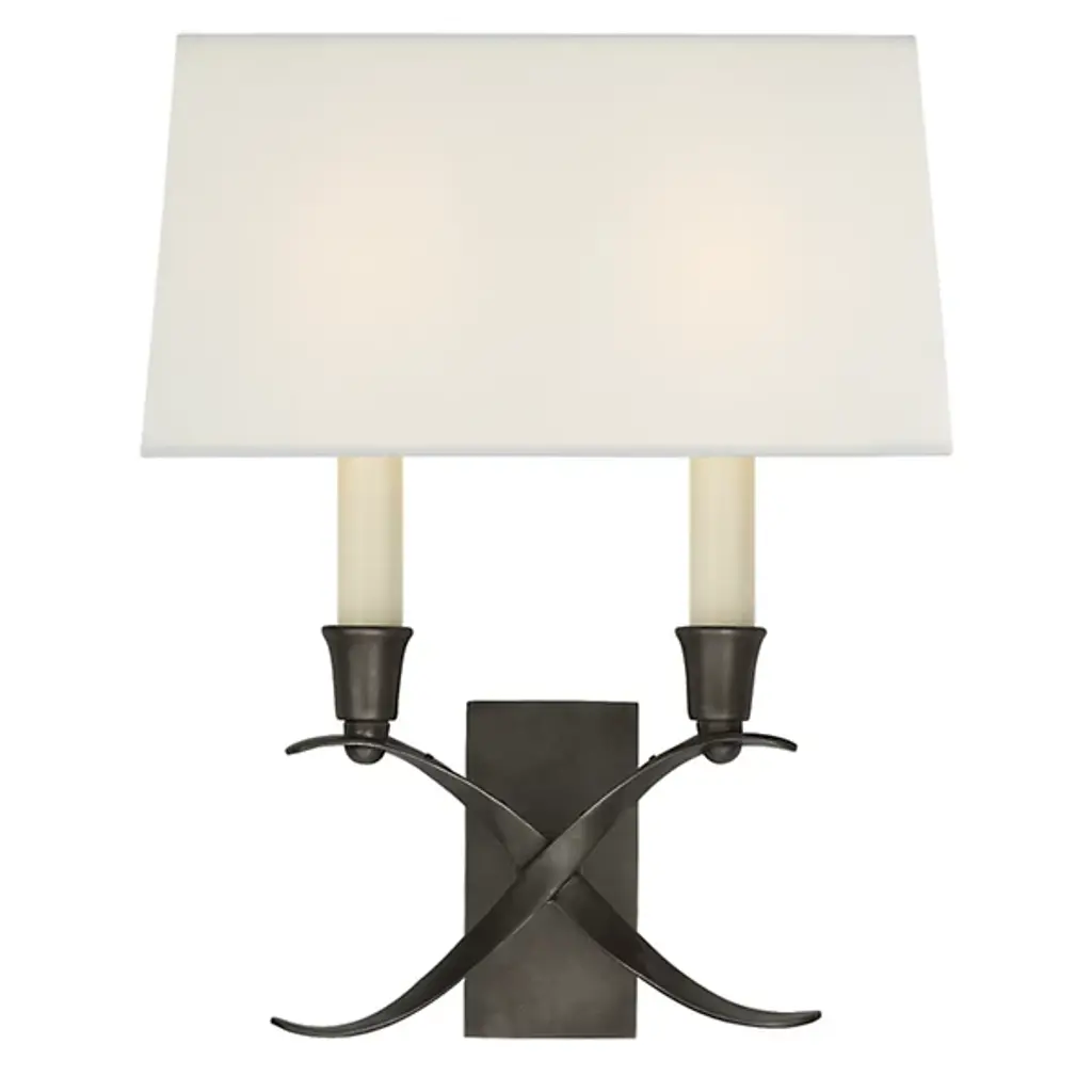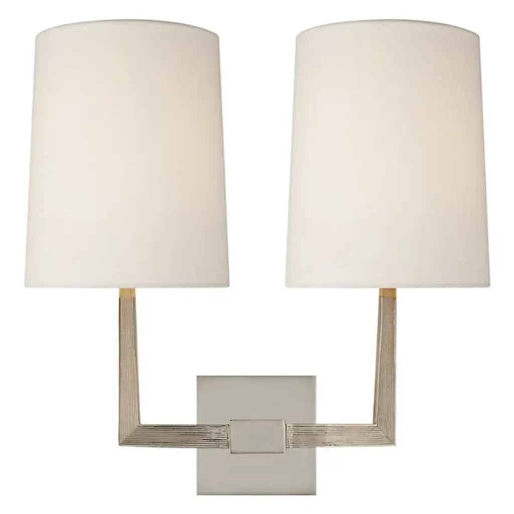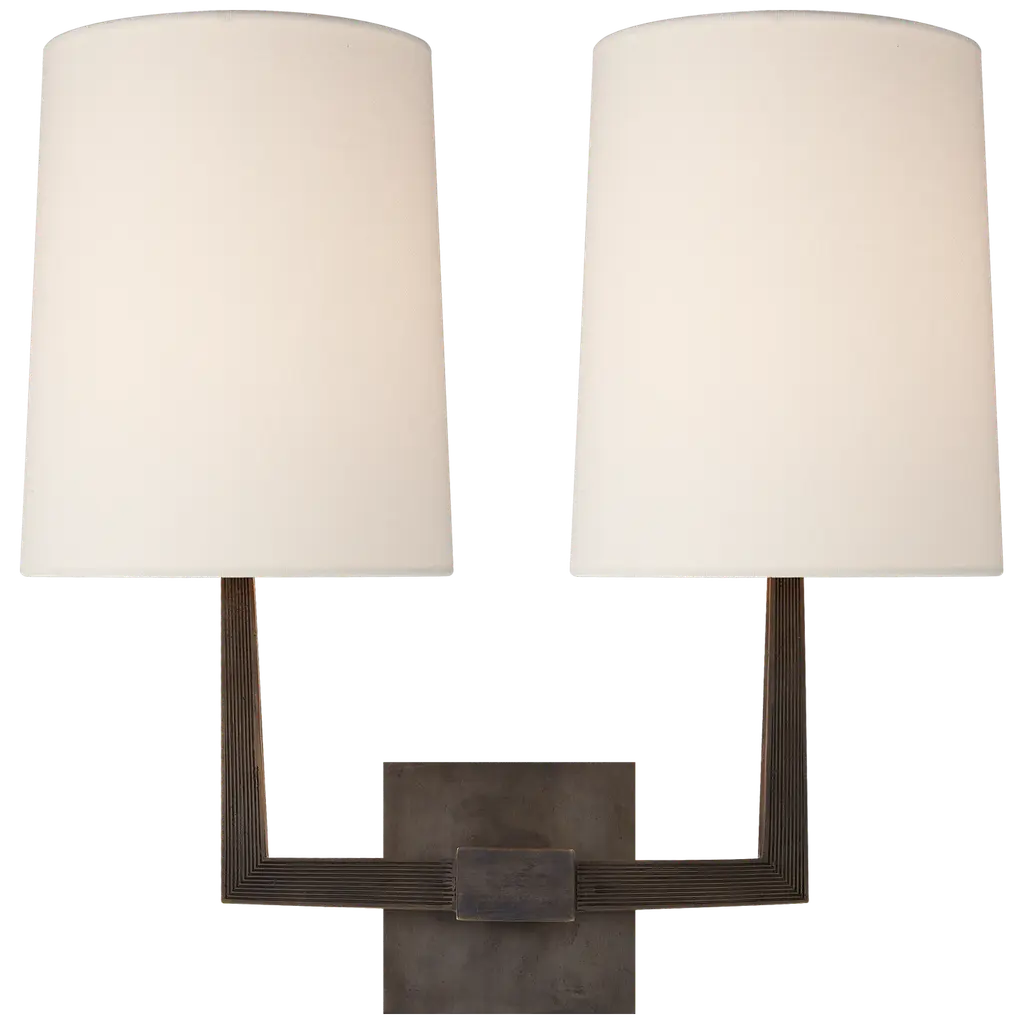 Barbara Barry For Visual Comfort Signature Ojai Large Double Sconce In Bronze With Linen Shade