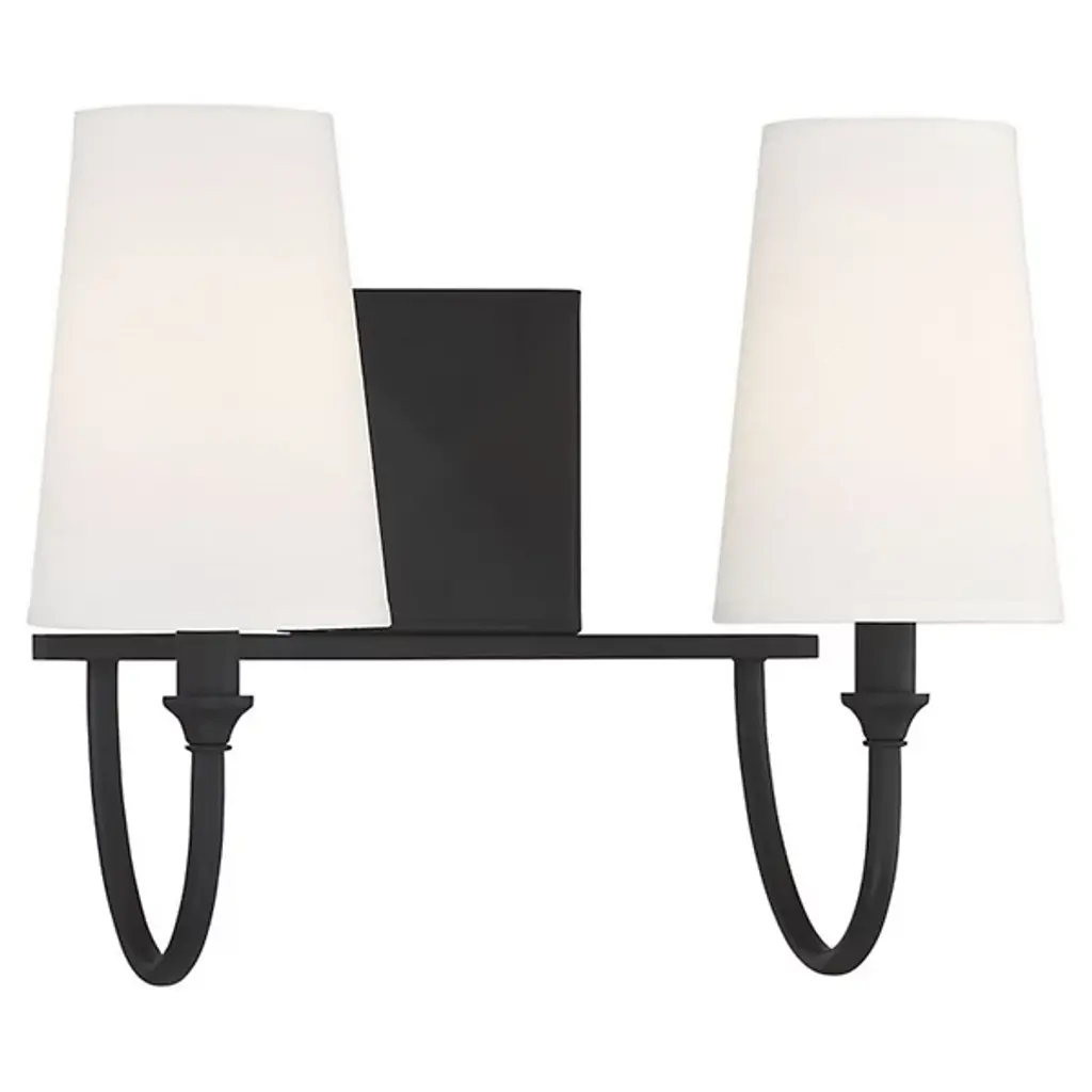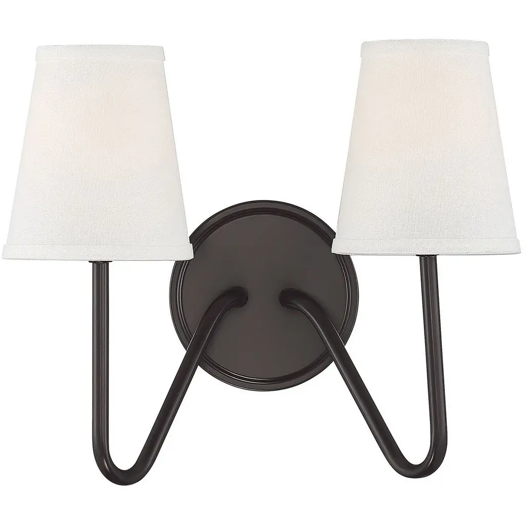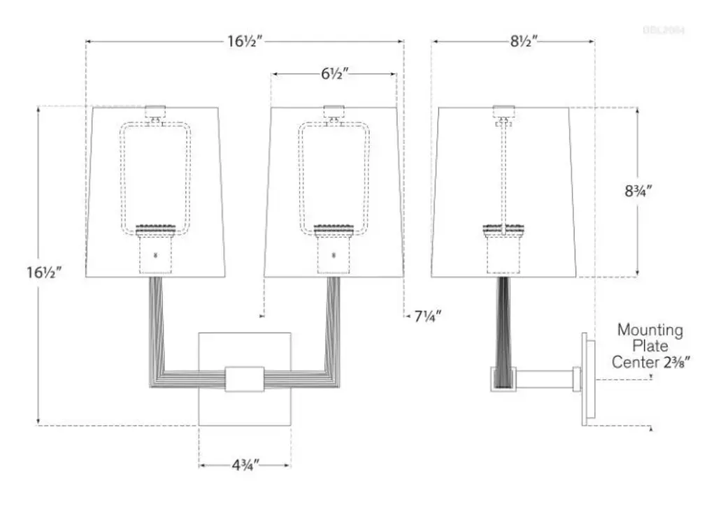 Ojai Large Double Sconce in Bronze with Linen Shade Designer: Barbara Barry Height: 16.5" Extension: 8.5" Backplate: 4.75" Square Mounting: Hardwire Shade Detail: 6.5" x 7.25" x 8.75" Linen Socket: 2 - E26 Keyless Wattage: 2 - 60 B11 Safety Rating Location: DRY