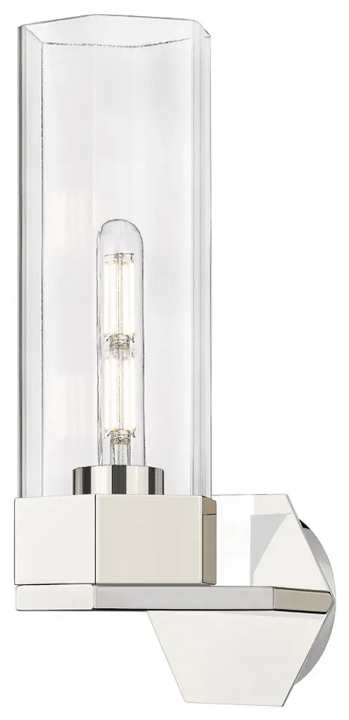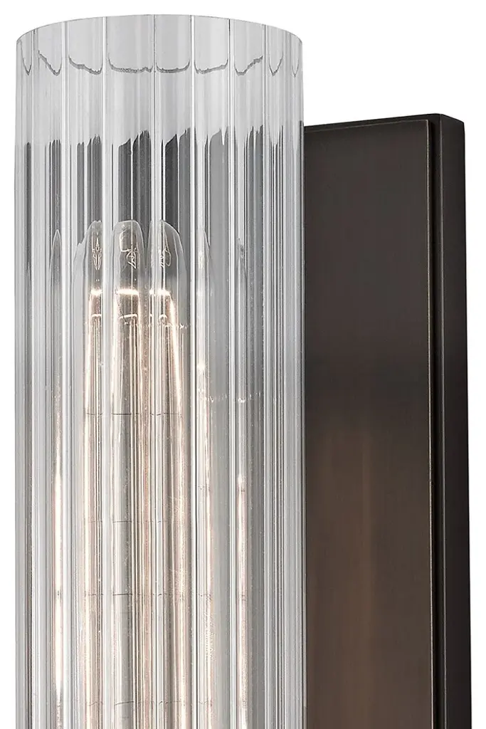 York 24" Single Box Sconce in Polished Nickel with Clear Ribbed Glass