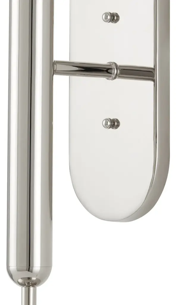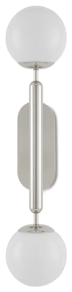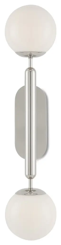 The Barbican Double-Light Nickel Wall Sconce has a tubular stem that balances cup-like shapes into which translucent glass globes nestle. Also meant to keep the design minimal is the button-like hardware that Ian Thornton designed to be as streamlined as possible. This silver sconce is included in our Bagno Collection of damp-rated lighting that is designed specifically for bathrooms. The Barbican can be mounted sideways to fit over a mirror.Number of Bulbs: 2Type of Bulb: B Torpedo TipMax Bulb Wattage: 60Bulbs Included: Bulbs Not Included