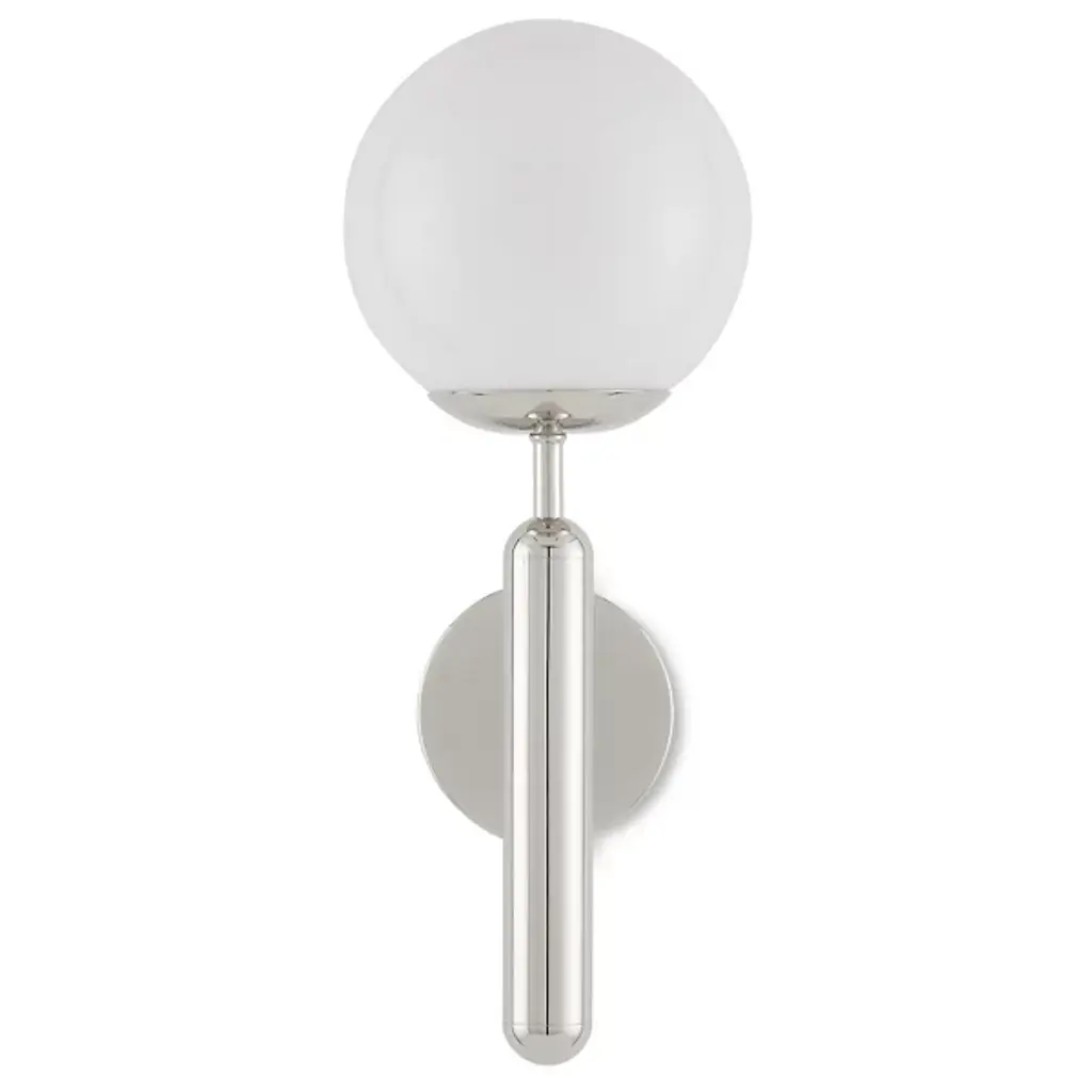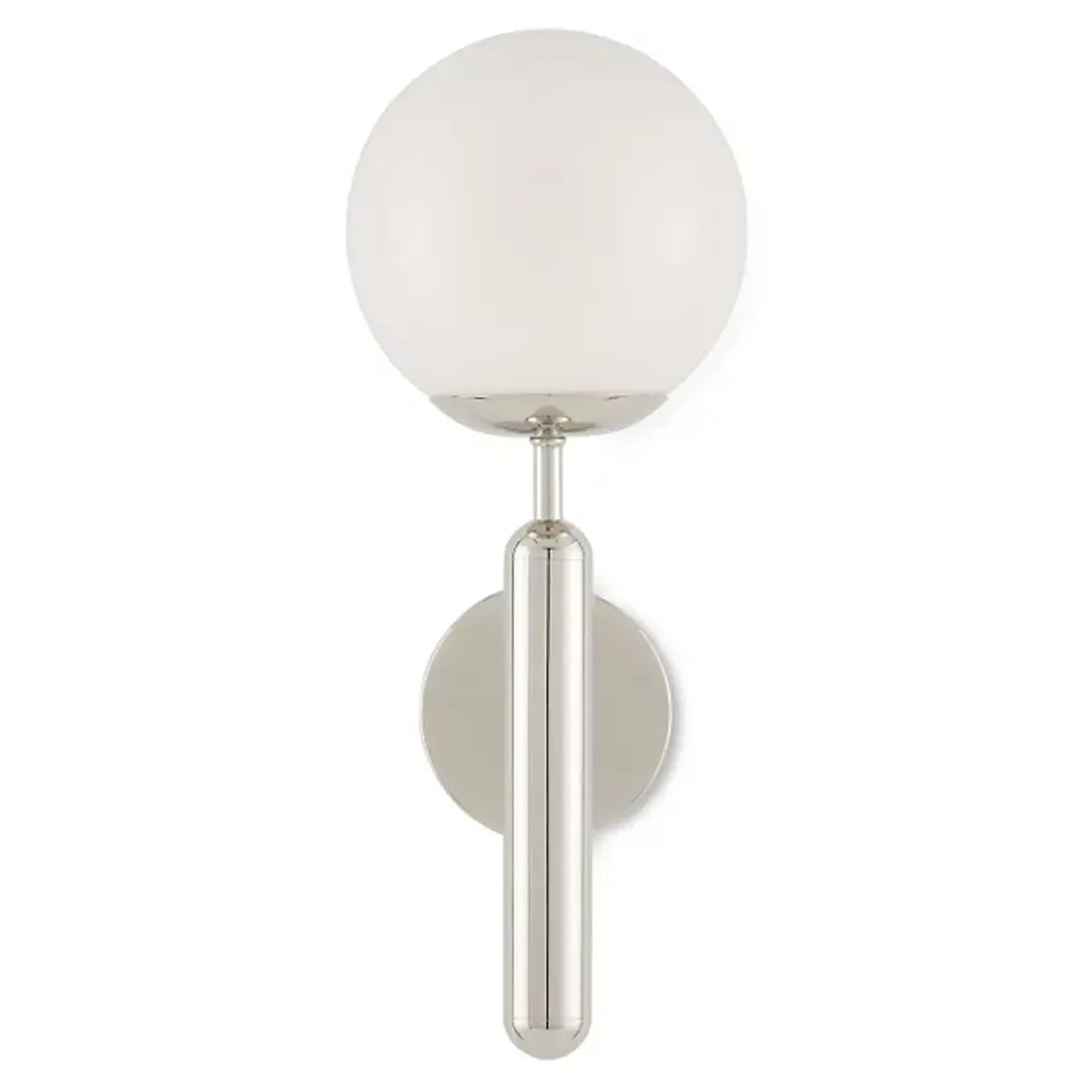 The Barbican Wall Sconce from Crystorama features a sleek tubular stem that elegantly supports a cup-like structure, cradling a translucent glass globe. Designed by Ian Thornton, the sconce incorporates button-like hardware, ensuring a minimalistic and streamlined appearance. This silver sconce is thoughtfully included in the Bagno Collection of damp-rated lighting, crafted explicitly for bathrooms. The Barbican can be effortlessly mounted sideways to complement any mirror space for added versatility.