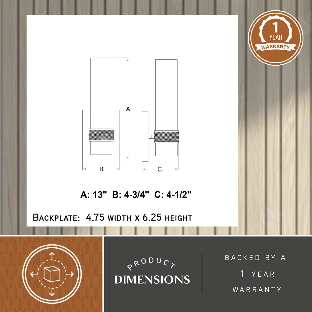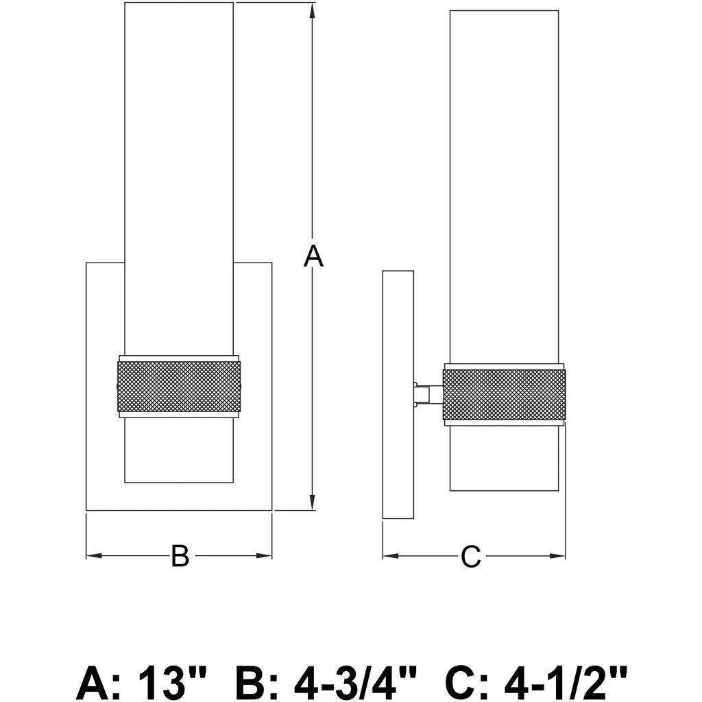The Bari collection is a blend of simplicity and sophistication featuring a contemporary knurled ring. Ample light emanates from the elongated clear glass shade creating a dramatic effect. Pair with a clear filament bulb for the optimal look. This damp rated wall sconce is ideal for bathrooms, hallways, stairways, and bedrooms.