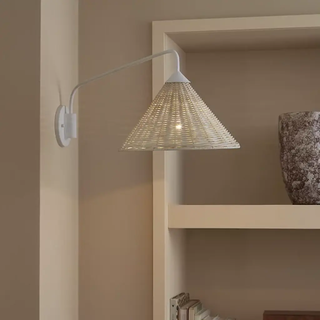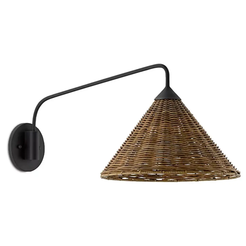 Presenting a casual approach to interior lighting, the Basket Swing Arm Wall Sconce from Currey & Company features a clean and natural allure, perfect for contemporary homes that want powerful, distinct light that doesn’t steal the show from the rest of the room. An iron wallplate presents a gently curving mounting rod that caps off and upholds an Arurog reed-woven lampshade. Widening downward, the single light within shines a full, warm glow, ensuring it’s a worthy addition for task lighting.
