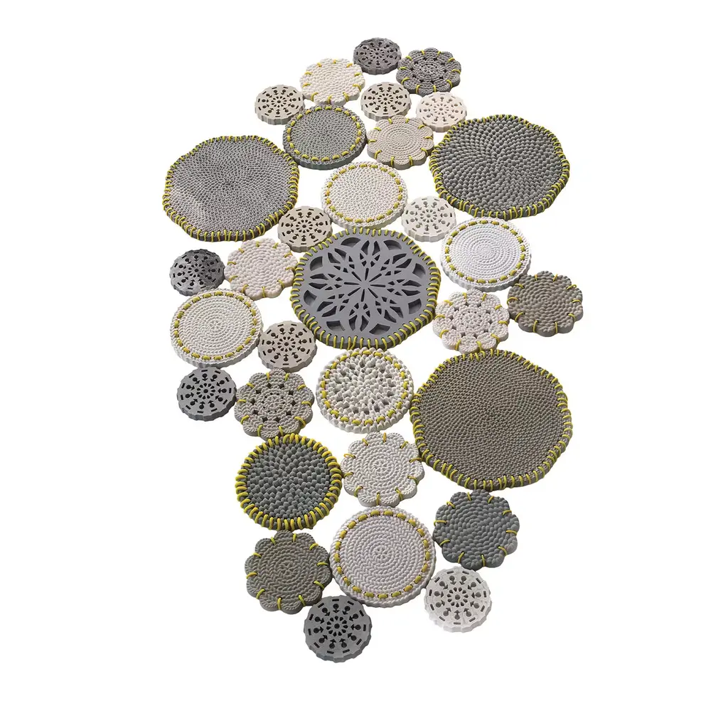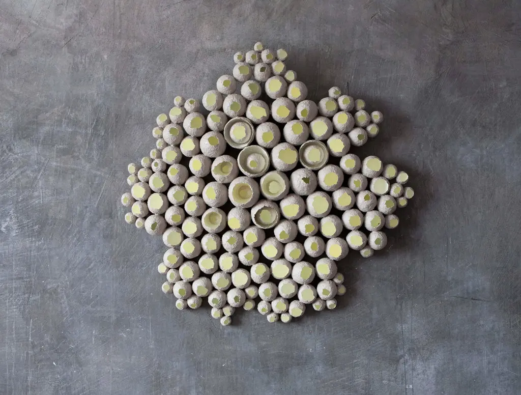 Bavovna S Sculptural Panel Lamp by Yalanzhi ObjectsDimensions: D 20 x W 90 x H 90 cm. Materials: Cellulose. Cellulose is a recycled material that was once forest. A high-quality, durable finish. Highly-pigmented coating. Custom finishes upon request. The lamp can be painted in any color from our palette. The bulb is not included. Please kindly note that handcrafted items may slightly differ in shades and textures. Only for indoor use. Please contact us.All our lamps can be wired according to each country. If sold to the USA it will be wired for the USA for instance.Yulia began her journey by experimenting with cellulose in 2015. It was during these initial explorations that she crafted her first recipes and textures, paving the way for her future designs.The launch of the “Cellular Practice” project series marks a new chapter in Yulia’s creative journey. Her work starts to take on a voluminous form, where her desire to create large installations, sculptures, and murals first manifests. Within this very project, the inception of the brand’s initial lighting designs occurs.The year 2017 stands as a milestone with a series of exhibitions for a sculptural project in Odesa and Kyiv. These events transition her from pure art to object design. Yulia decides she wants to focus all her energy and attention on nurturing her own brand. Along with her partner Yevhen, they embarked on this as a family business venture.During the first year, the brand tests its products, experiments with palettes, and creates various models. The products, still in the raw stage, are showcased at a non-professional exhibition, Kyiv Flower Market. The response is overwhelming, garnering numerous reviews, contacts, and orders.Expanding beyond mere object design, Yulia opened the YO Gallery in Odesa, offering a wide-ranging educational program for children and adults, along with exhibitions.In 2018, Yalanzhi Objects made its international debut in Paris, a powerful catalyst for the brand. This accelerates the standardization of the products — series, colors, sizes, shapes, packaging, and even the branding, printing, and website. These steps prove critical in establishing the brand in the Ukrainian market.