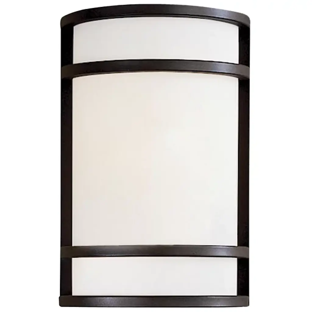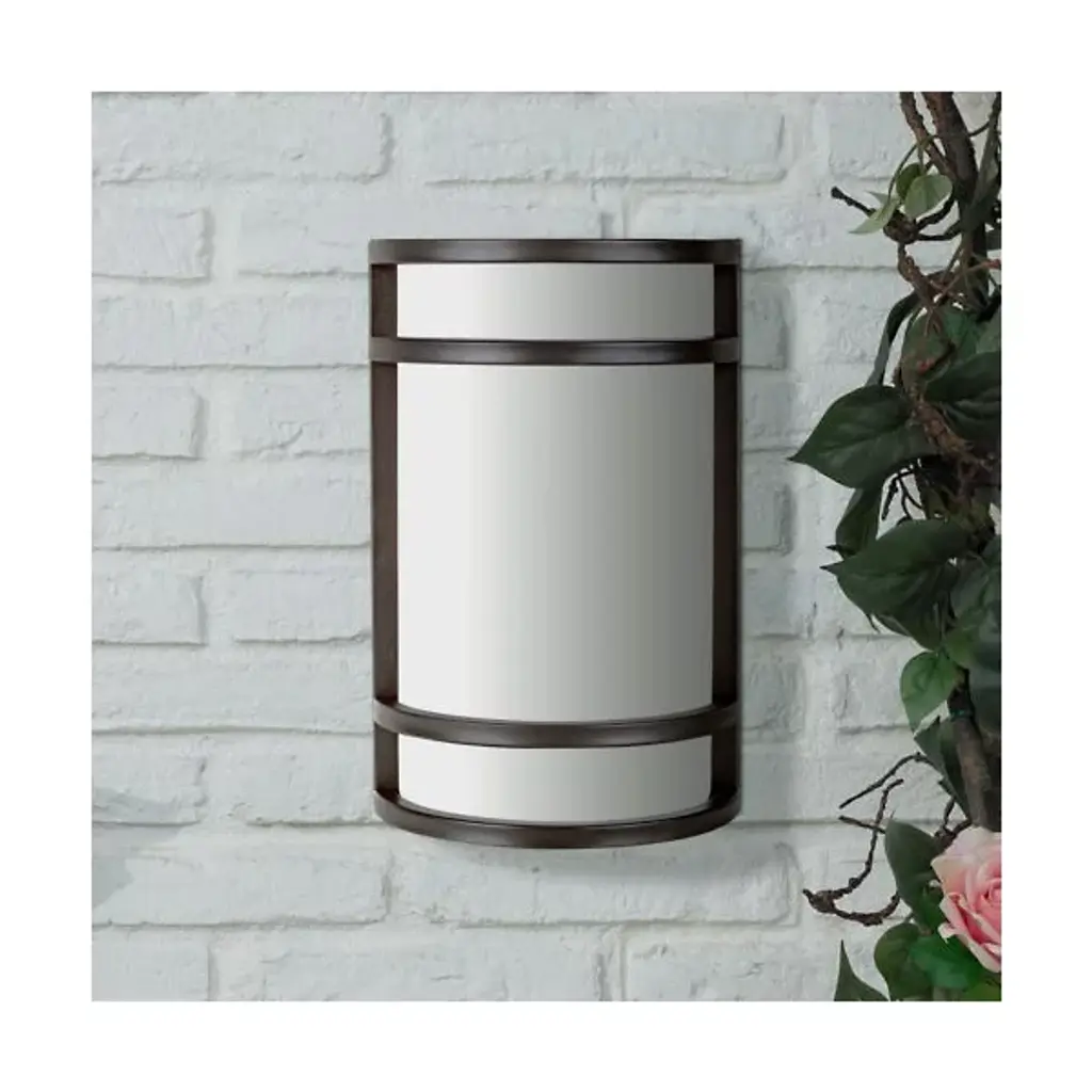 The Bay View Outdoor Wall Sconce by The Great Outdoors combines clean lines and a simple silhouette to bring spaces a mix of form and function. The half-cylindrical shade of this piece is divided neatly by a beautifully finished metal frame and diffuses an even layer of practical light onto the surroundings. This handsome sconce has a contemporary look that complements a wide range of outdoor locations and architectural styles as it helps to keep them well illuminated.