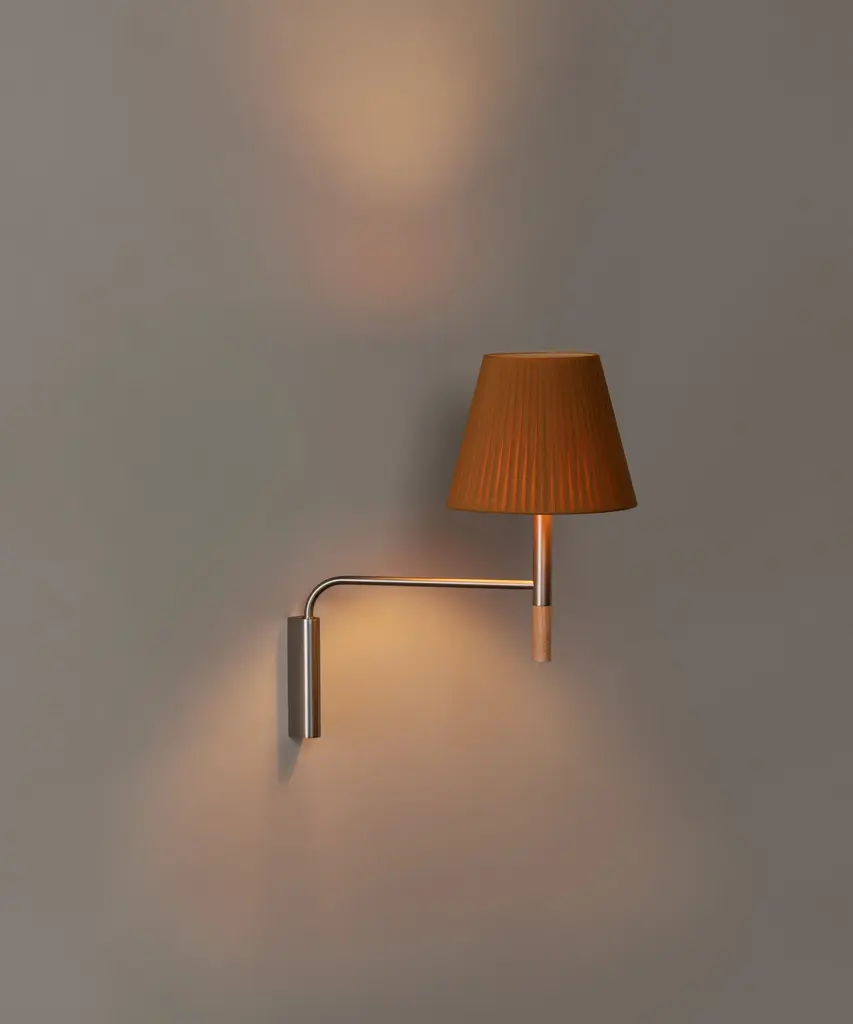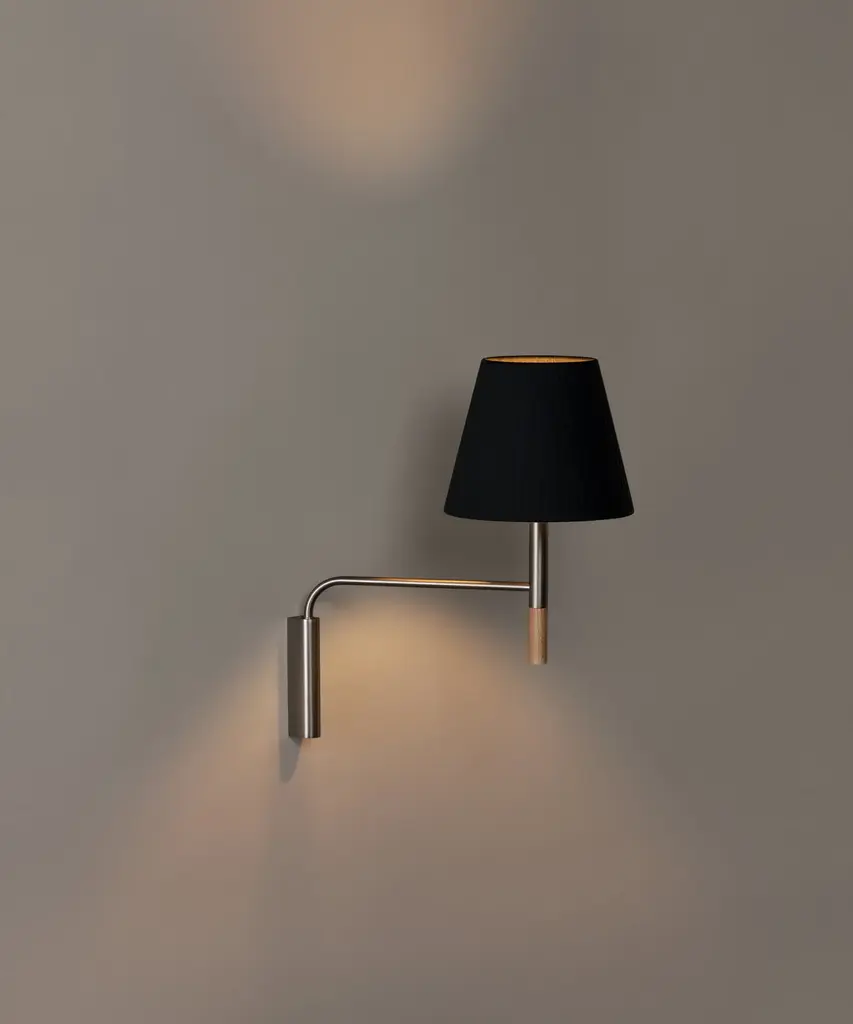 The BC1, BC2, and BC3 wall lamps are shown as an exercise in constructive solidity, aesthetic sobriety, and functional quality. Its different shade options, whether in linen, sewn cardboard, or ribbon, as well as its sober use of materials make them ideal for multiple situations. BC2 is a fixed anchor, while BC1 and BC3 are pivoting, with or without an external power supply. Produced by the Barcelona-based lighting purveyor, Santa & Cole.