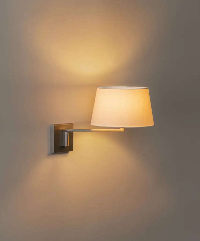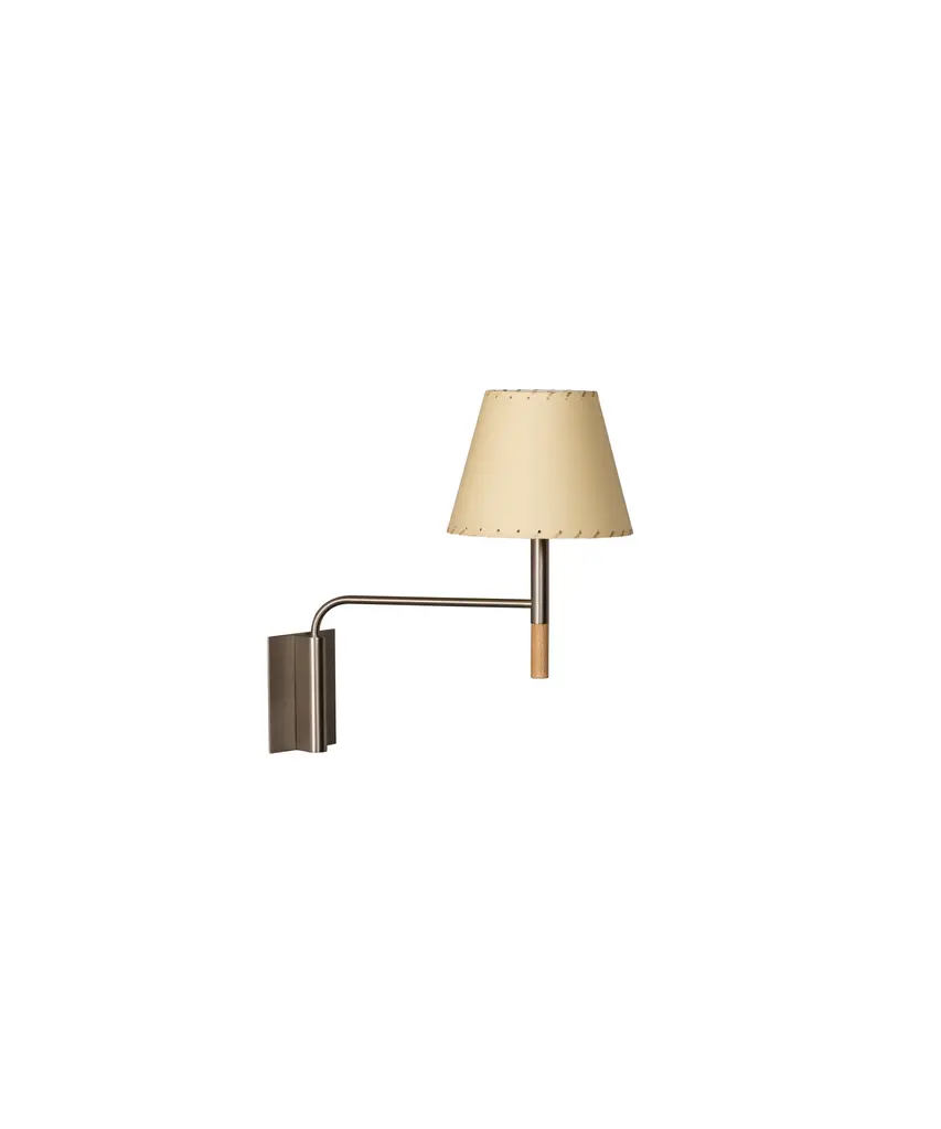 The BC1, BC2, and BC3 wall lamps are shown as an exercise in constructive solidity, aesthetic sobriety, and functional quality. Its different shade options, whether in linen, sewn cardboard, or ribbon, as well as its sober use of materials make them ideal for multiple situations. BC2 is a fixed anchor, while BC1 and BC3 are pivoting, with or without an external power supply. Produced by the Barcelona-based lighting purveyor, Santa & Cole.