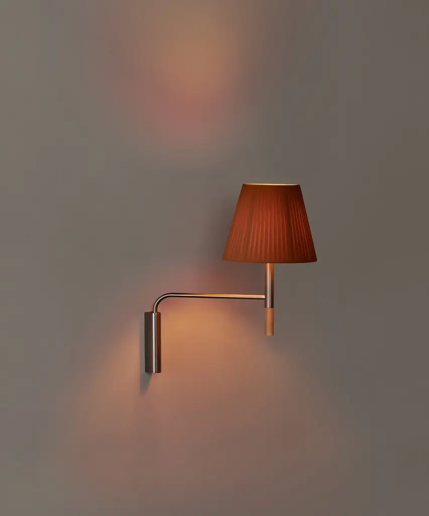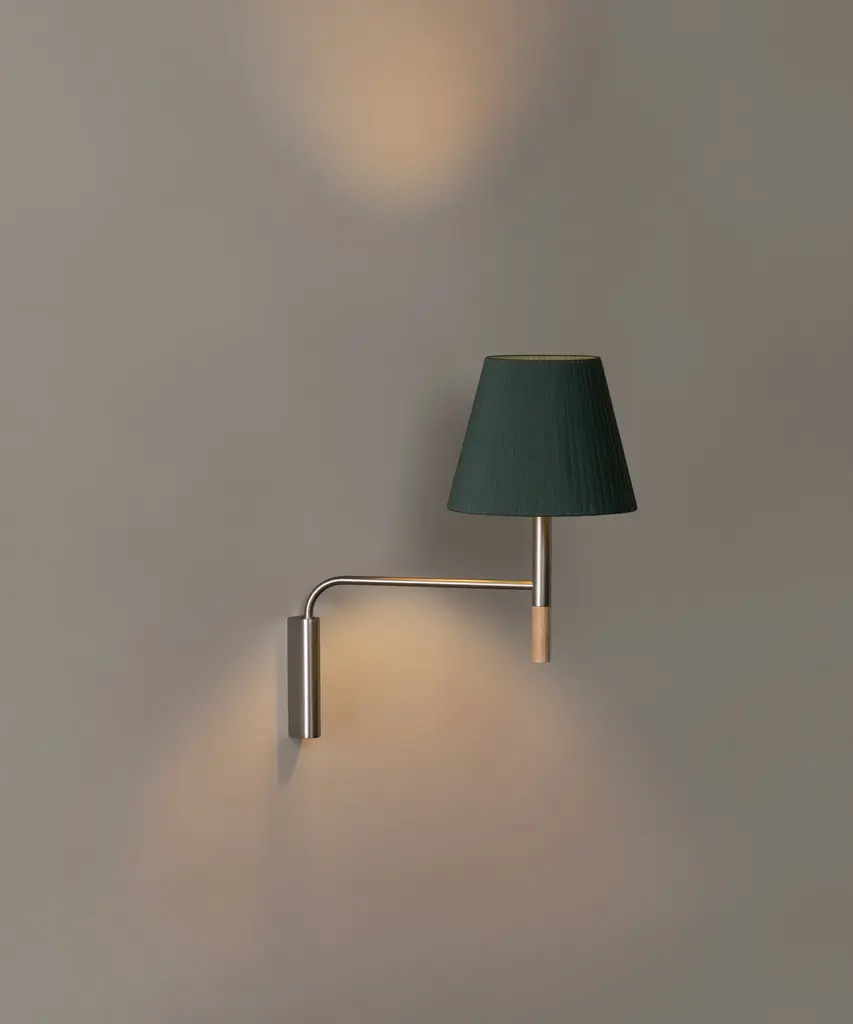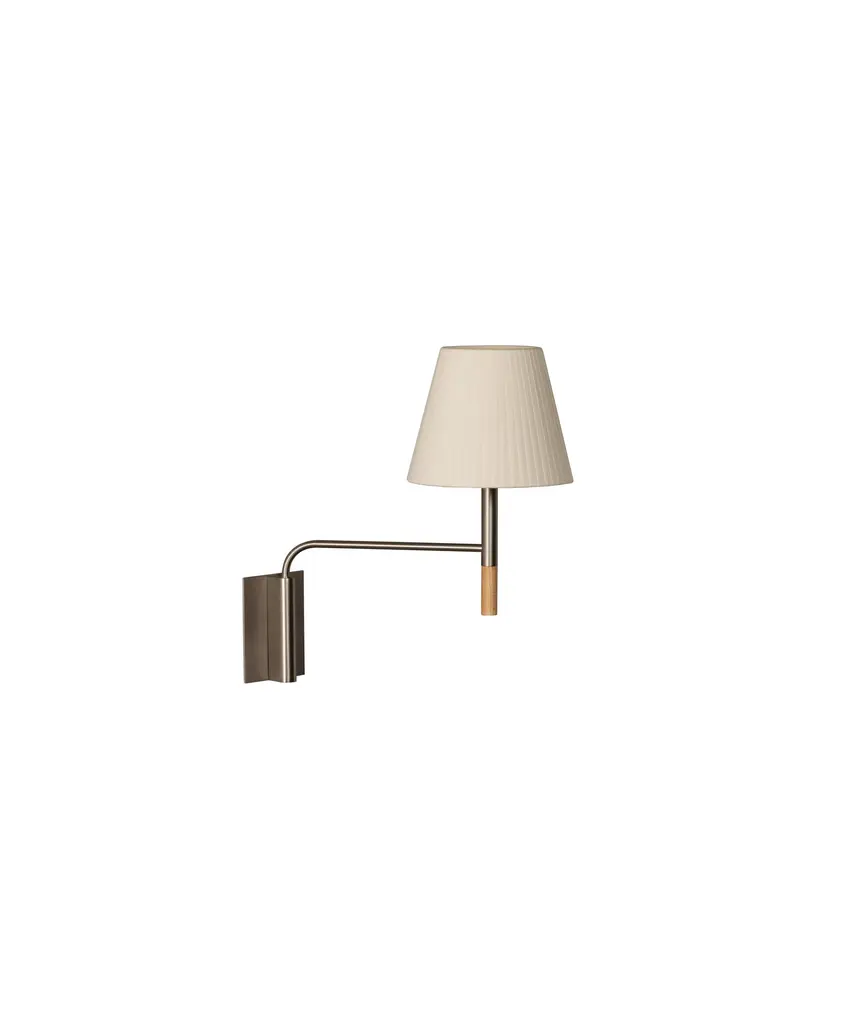 The BC1, BC2, and BC3 wall lamps are shown as an exercise in constructive solidity, aesthetic sobriety, and functional quality. Its different shade options, whether in linen, sewn cardboard, or ribbon, as well as its sober use of materials make them ideal for multiple situations. BC2 is a fixed anchor, while BC1 and BC3 are pivoting, with or without an external power supply. Produced by the Barcelona-based lighting purveyor, Santa & Cole.