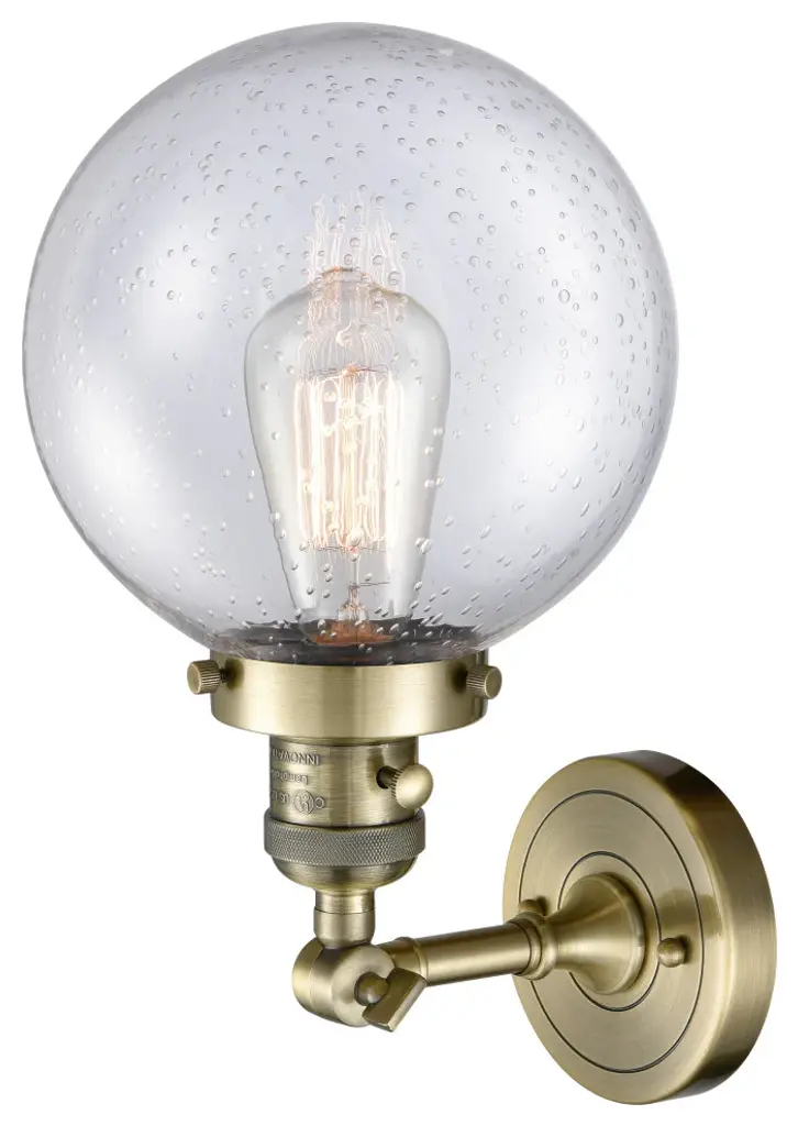 Beacon 1-Light Sconce, Antique Brass, Glass: Seedy