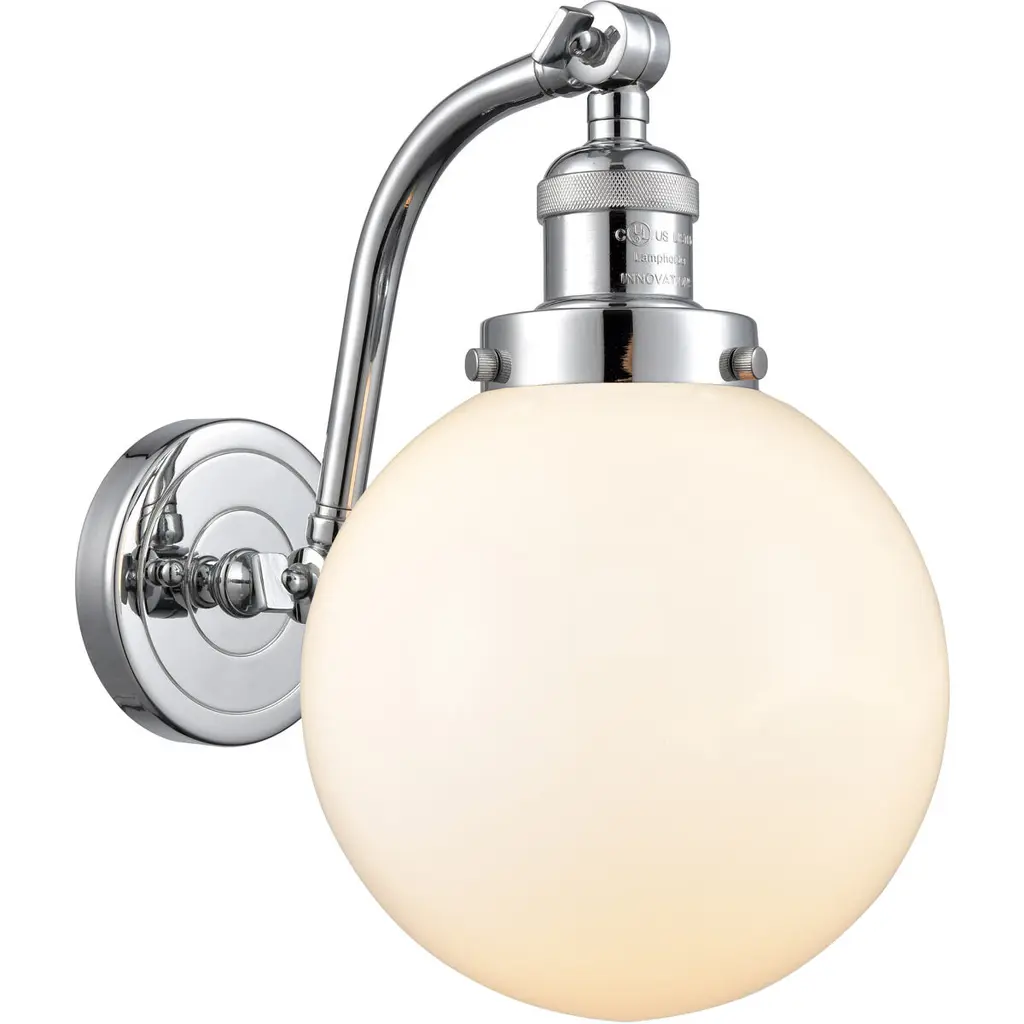 Beacon 1-Light Sconce, Polished Chrome, Glass: Matte White Cased