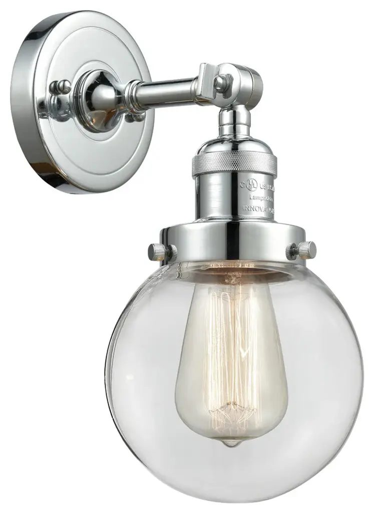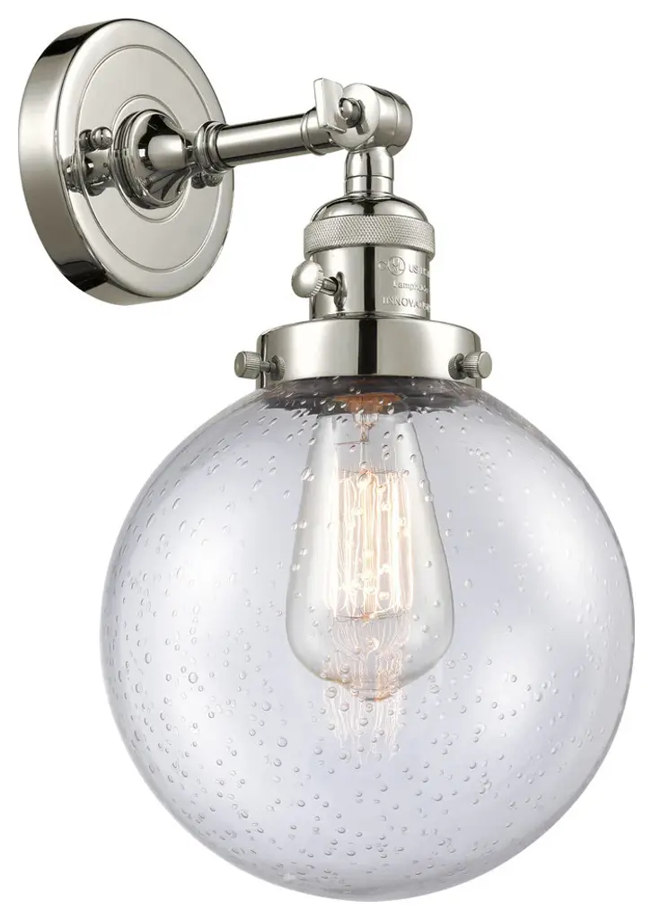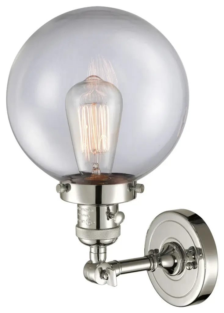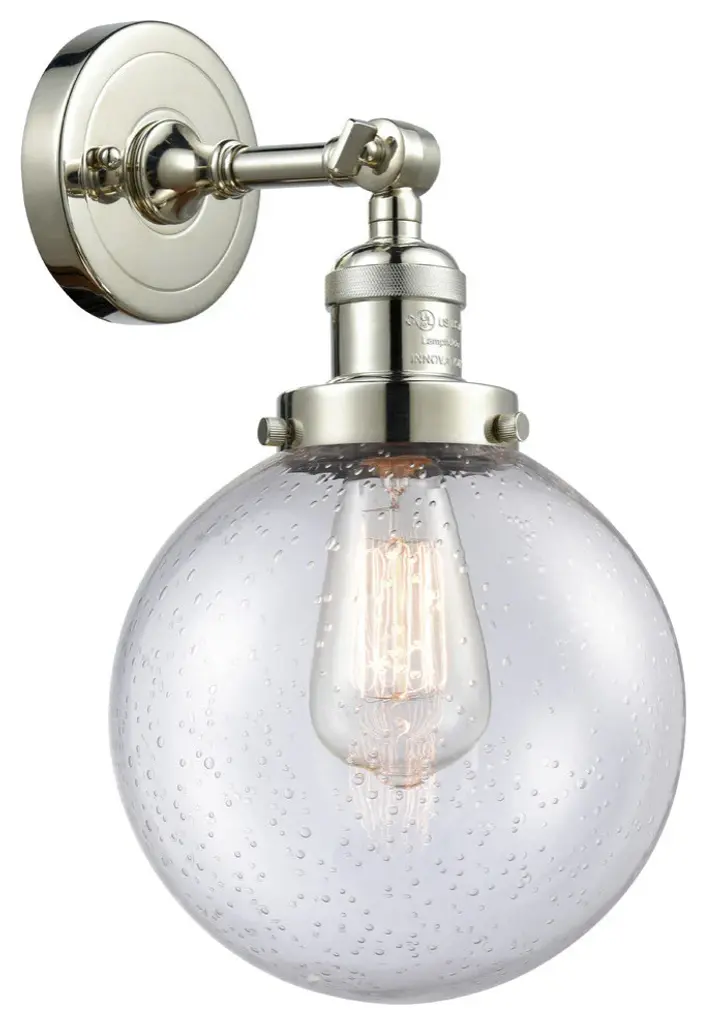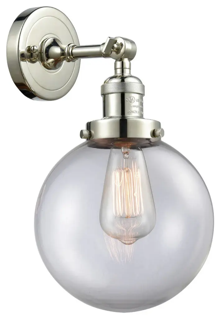 Beacon 1-Light Sconce, Polished Nickel, Glass: Clear