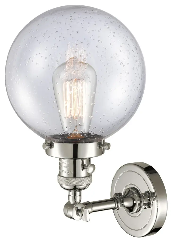Beacon 1-Light Sconce, Polished Nickel, Glass: Seedy
