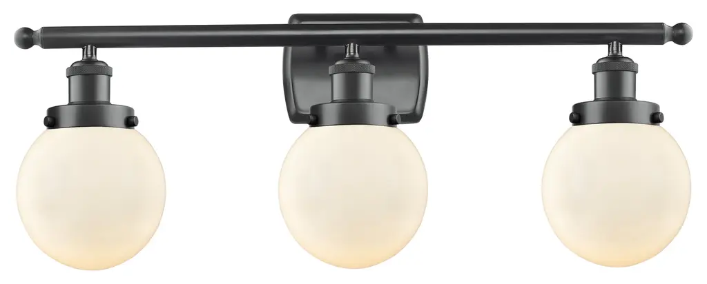 Beacon 3-Light Bath Vanity-Light, Matte Black, Matte White
