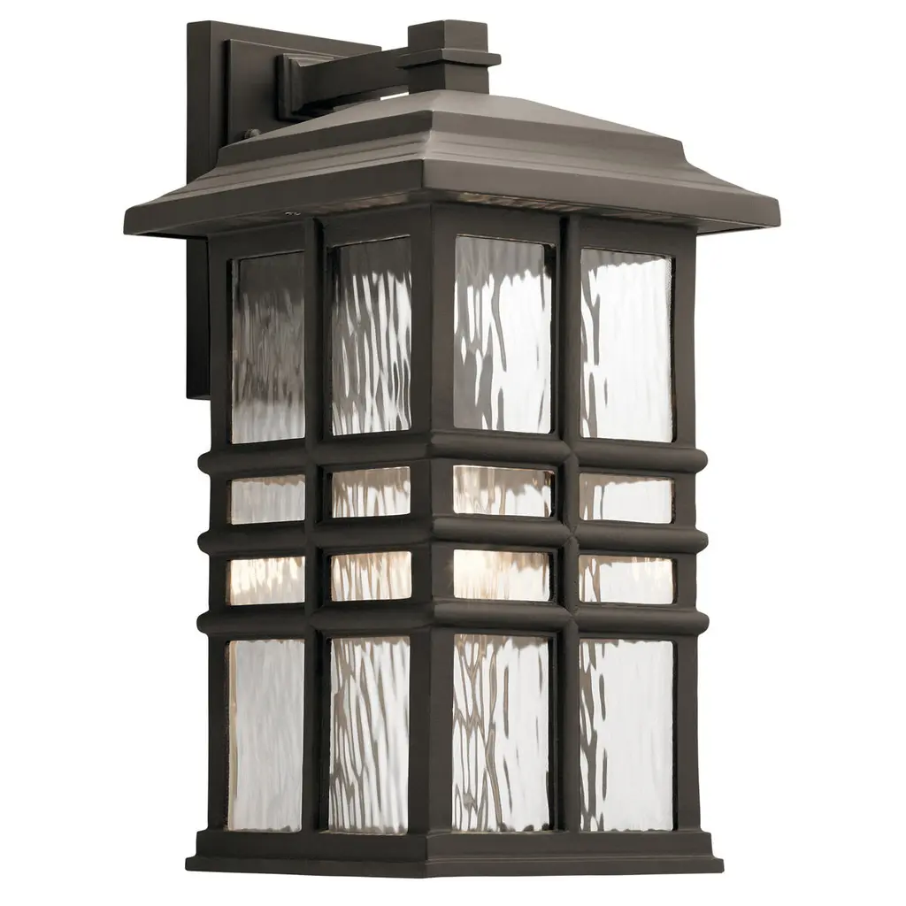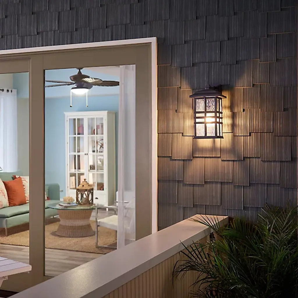 Add traditional flair to your outdoor living spaces with the Beacon Square Outdoor Wall Sconce by Kichler. Inspired by classic craftsman architecture, this lantern’s aesthetic is familiar yet versatile enough to fit right in with any exterior décor. The clear hammered glass evokes the surface of the ocean, while its matte frame creates an elegant contrast. This fixture is crafted from materials designed to withstand harsh outdoor conditions, including saltwater and UV rays, for a lasting piece that is as durable as it is handsome