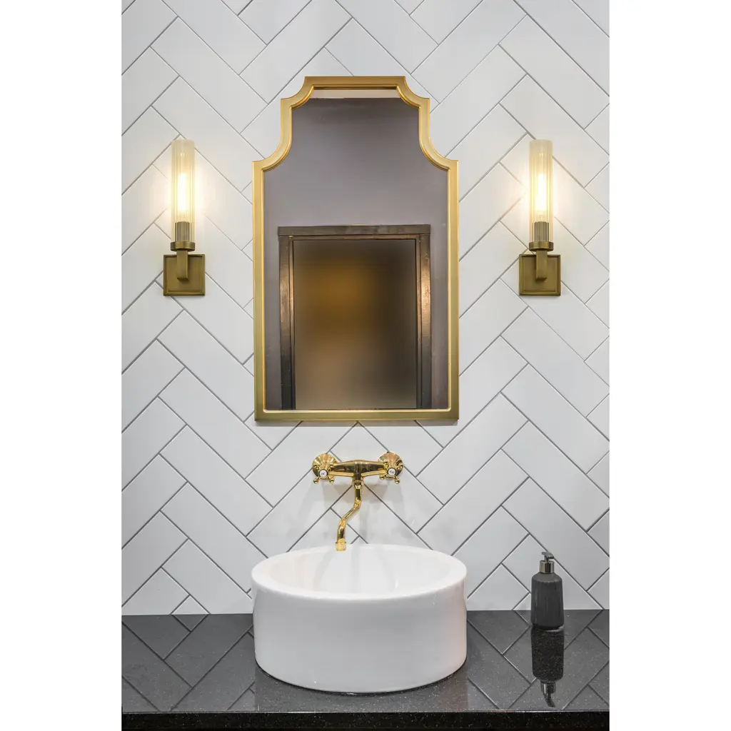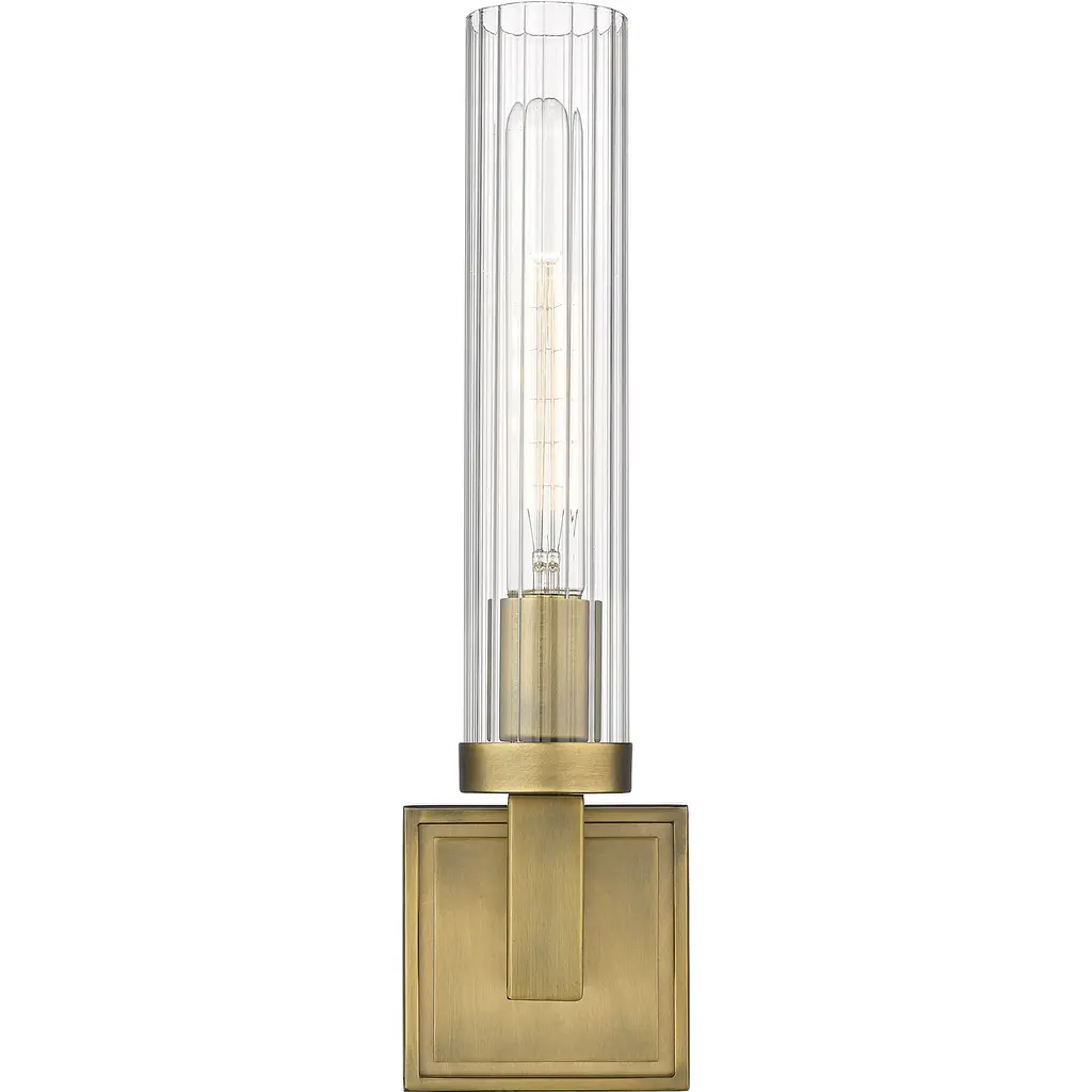 Illuminate a hallway, stairwell, or powder room with this elegant metal wall sconce. Featuring a tasteful, textured glass shade and a rich rubbed brass finish, this single-light sconce adds effortless sophistication to any room of the home.