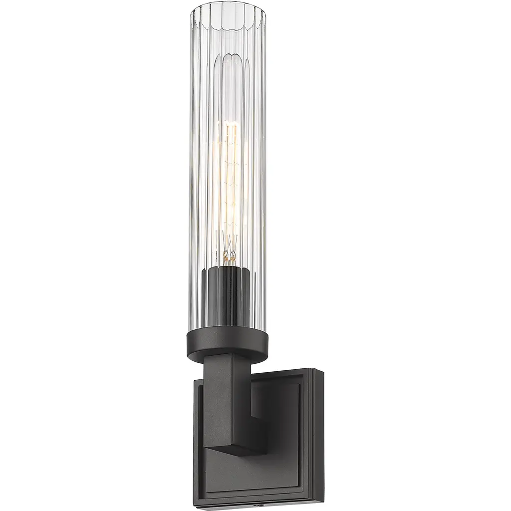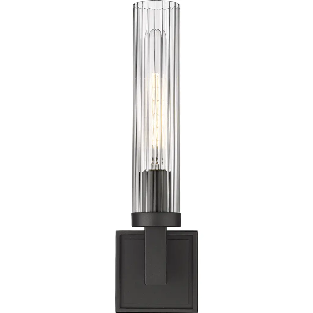 Accent lighting borrows from a sophisticated aesthetic shaping this tasteful one-light wall sconce, a perfect choice for custom contemporary spaces. The Beau sconce offers a clean linear silhouette with a tall tubular fluted glass shade mounted to a minimalist frame fashioned of bronze finish steel. Add a hint of upscale flavor to a hallway, bath space, or bedroom.