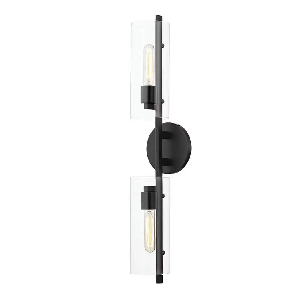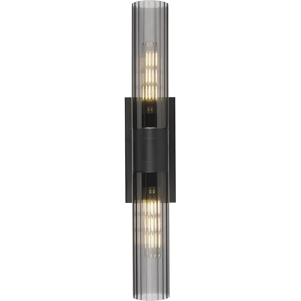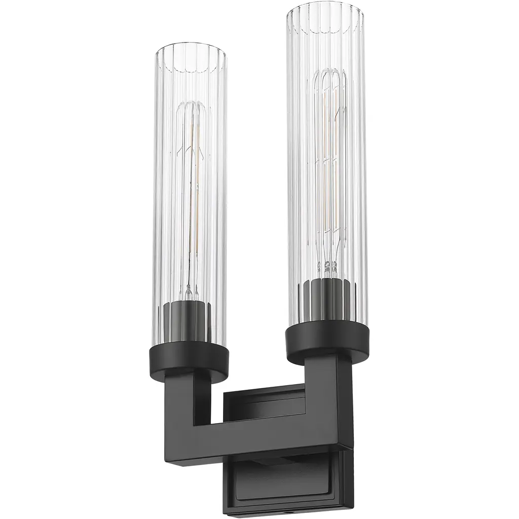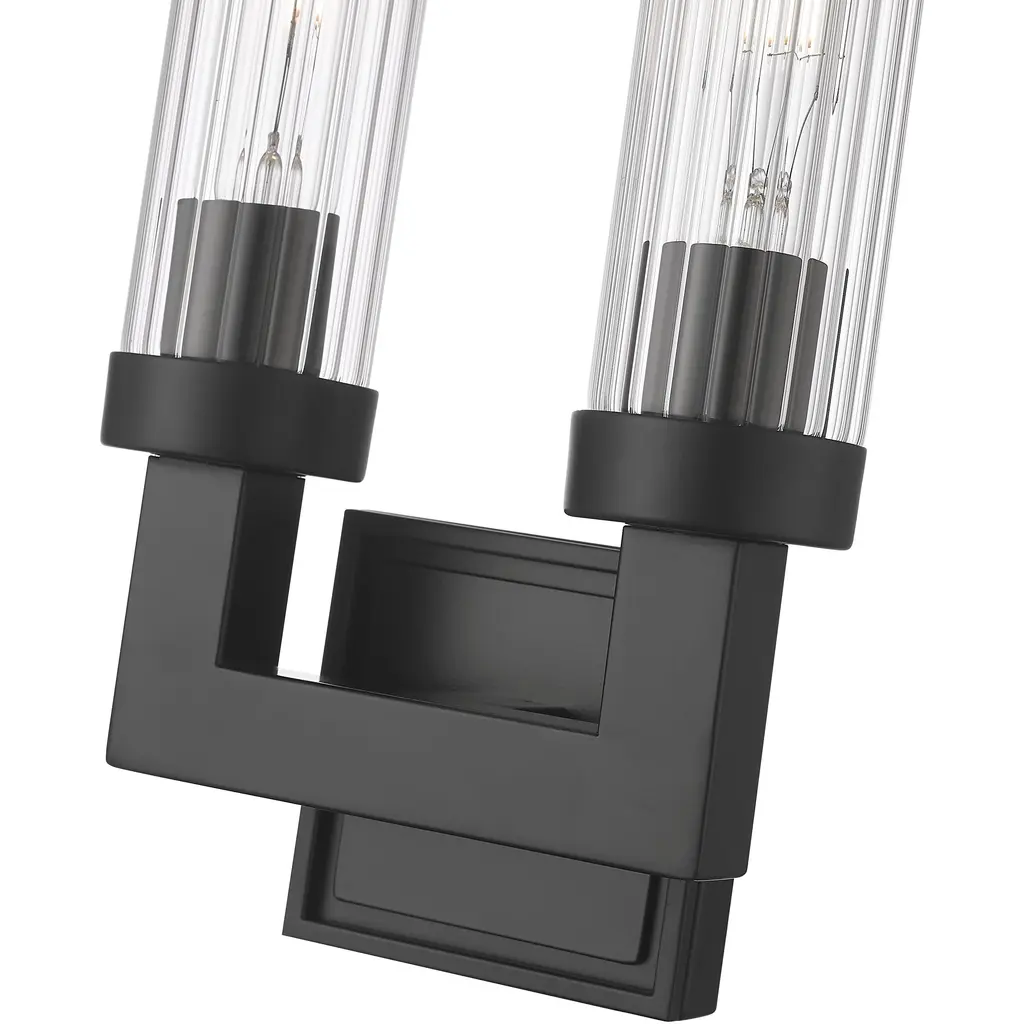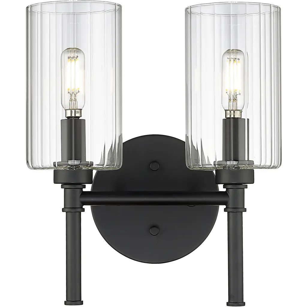 Delicately fluted glass cylinders bring a sophisticated presence to a modern two-light wall sconce. In matte black, it features a bold structure complete with a U-shaped arm that provides an eye-catching look. It's the perfect finishing touch anywhere from your entryway to your primary bedroom's en suite.