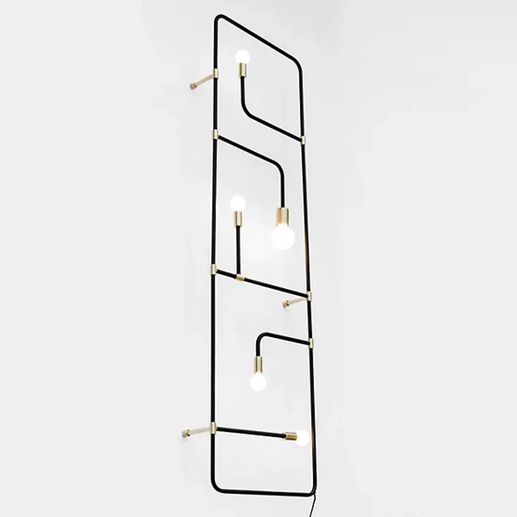 Quiet, yet sophisticated like a traditional Chinese screen. The Beaubien Rectangular Wall Sconce from Lambert & Fils makes a statement at any time of day through its graphic silhouette and comfortable glow. It's created by Samuel Lambert, a designer bringing a humble, yet complex visual language. Craftsmanship, artistry, and expression inform the work of the Montreal studio. To emphasize the intriguing design, artisans conceal mounting hardware behind the slender frame. The rectangular metal frame contains the visuals inside, like the outline of a traditional Chinese screen. Slender tubes move straight and in sharp angle changes to create a mesmerizing maze-like silhouette. Its milk glass globes seduce in shape alone, like those from the Memphis design movement. The eyes dot from one globe to the other as LED light radiates softly through them. Together, the globes fill in the frame with a golden spread of ambient light.