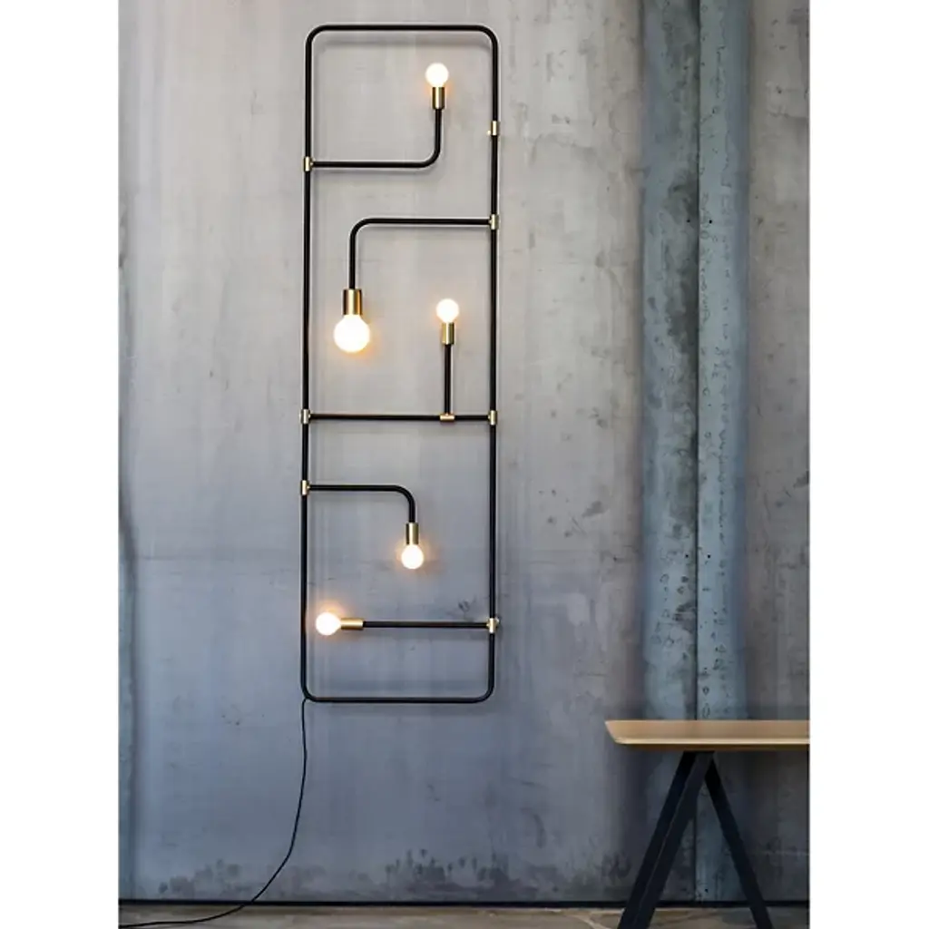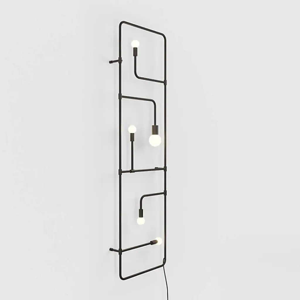 Quiet, yet sophisticated like a traditional Chinese screen. The Beaubien Rectangular Wall Sconce from Lambert & Fils makes a statement at any time of day through its graphic silhouette and comfortable glow. It's created by Samuel Lambert, a designer bringing a humble, yet complex visual language. Craftsmanship, artistry, and expression inform the work of the Montreal studio. To emphasize the intriguing design, artisans conceal mounting hardware behind the slender frame. The rectangular metal frame contains the visuals inside, like the outline of a traditional Chinese screen. Slender tubes move straight and in sharp angle changes to create a mesmerizing maze-like silhouette. Its milk glass globes seduce in shape alone, like those from the Memphis design movement. The eyes dot from one globe to the other as LED light radiates softly through them. Together, the globes fill in the frame with a golden spread of ambient light.