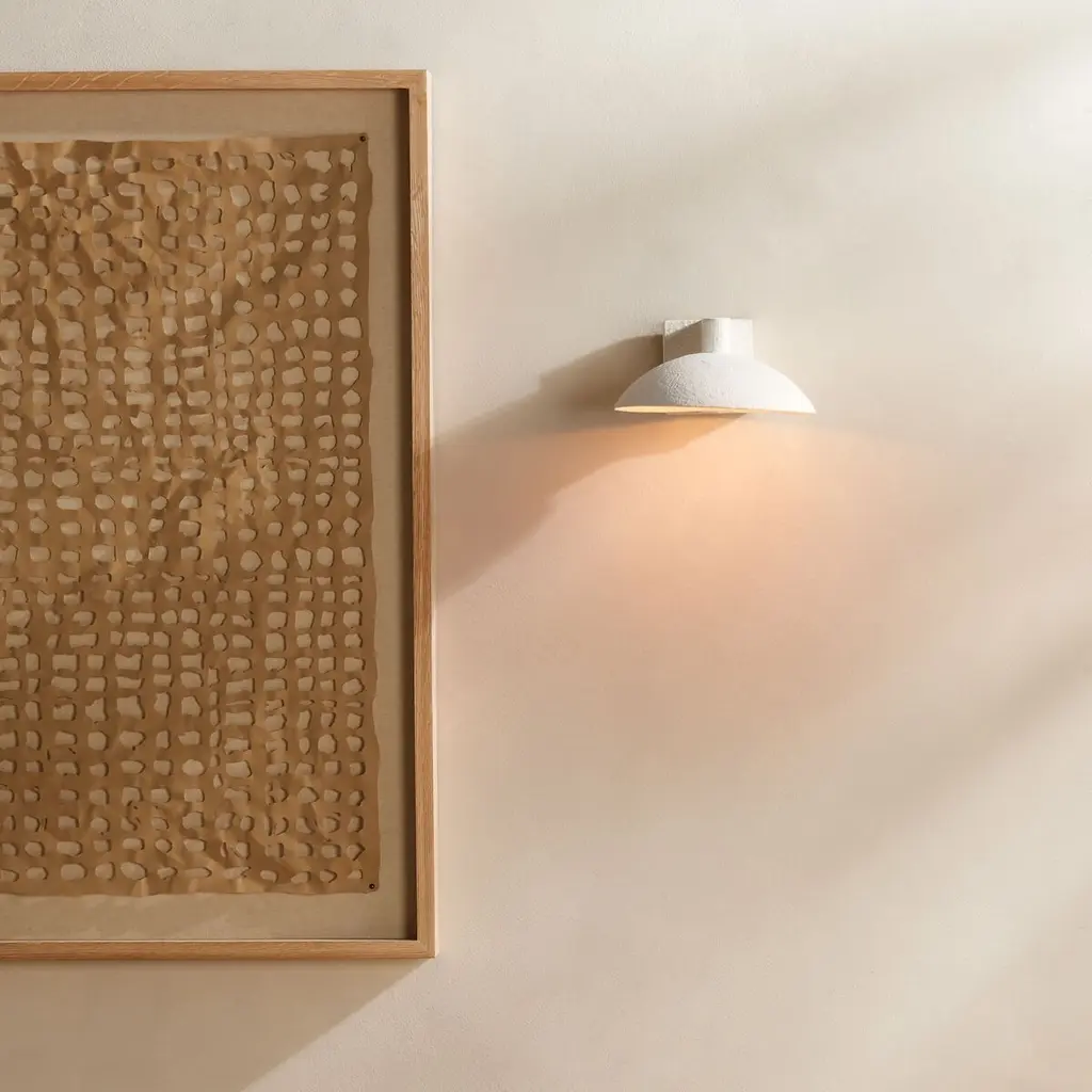 Domes are in vogue right now, as are finishes that replicate plaster. This sconce pairs the trends. You can mount it with the bulb facing up for a diffused glow or down for task lighting.