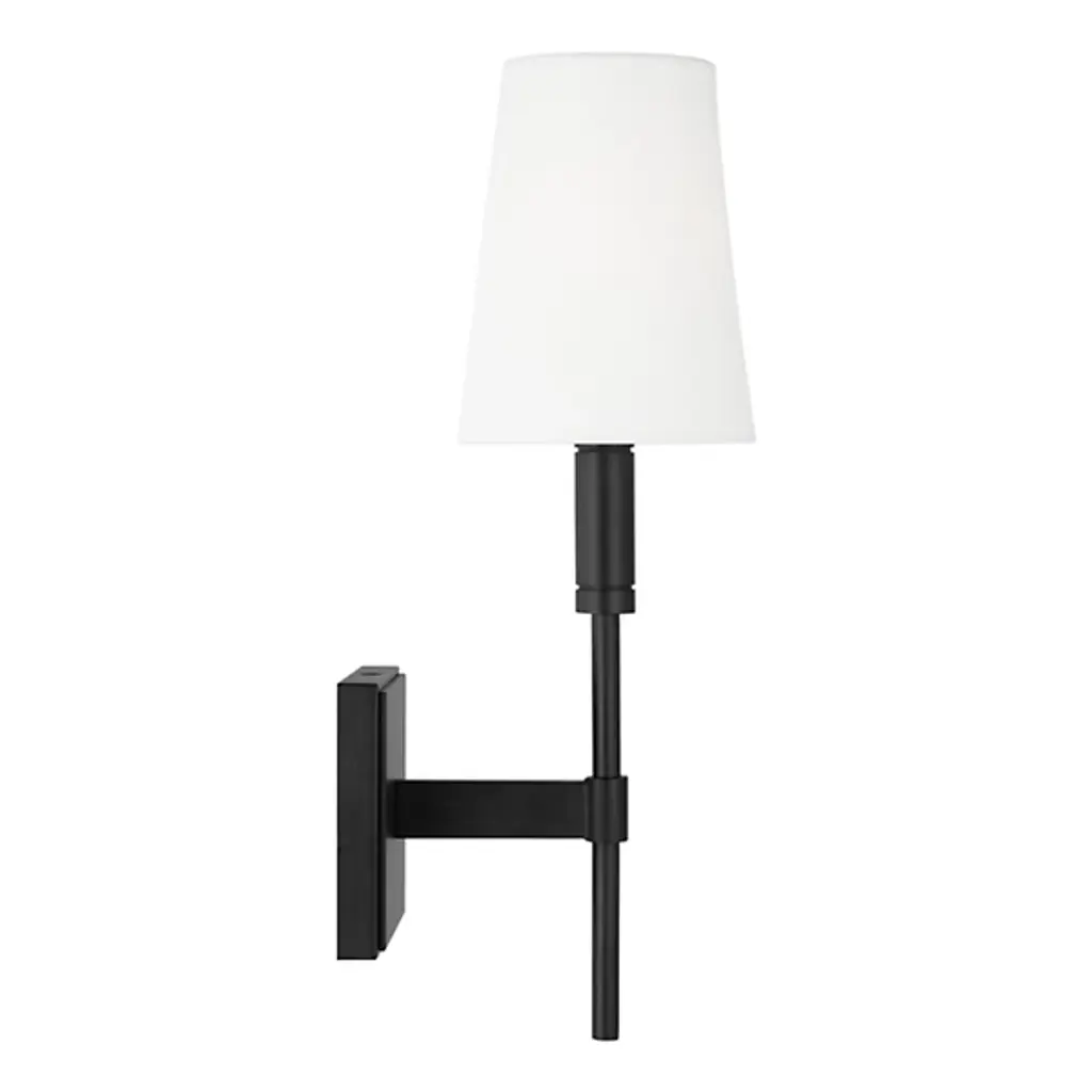 Familiar yet luxurious style. The Beckham Classic Wall Sconce from Visual Comfort Studio, formerly known as TOB by Thomas OBrien, has a traditional look, a common one you’ll find among wall sconces, but has some rich detailing that causes it to stand out. Its subdued style allows it to work in a variety of settings. The details reside on the slender stem, which his held out from the square backplate by a slim arm, to display its distinctive quality. It’s made out of Steel, so it will have the strength required of it to light up bathrooms, living rooms, and bedrooms for a long time. It comes with a drum-shaped and tapered shade made from White Linen Glass.