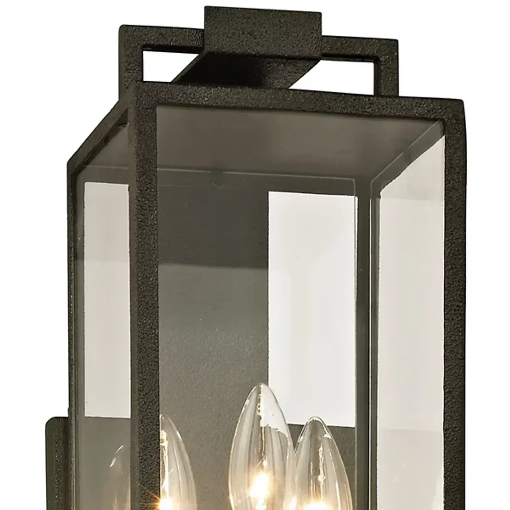 The Beckham Outdoor Wall Sconce by Troy Lighting incorporates elements from traditional lighting favorites to create a contemporary exterior look perfect for the modern home. By using a hand Cast Iron frame with squared features, it takes the classic traditional hanging lantern profile and adds a smart modernist inspiration uncommon to outdoor lights. This wall light presents a sense of intrigue perfect for accenting doorways and long walkways with a subtle approach.