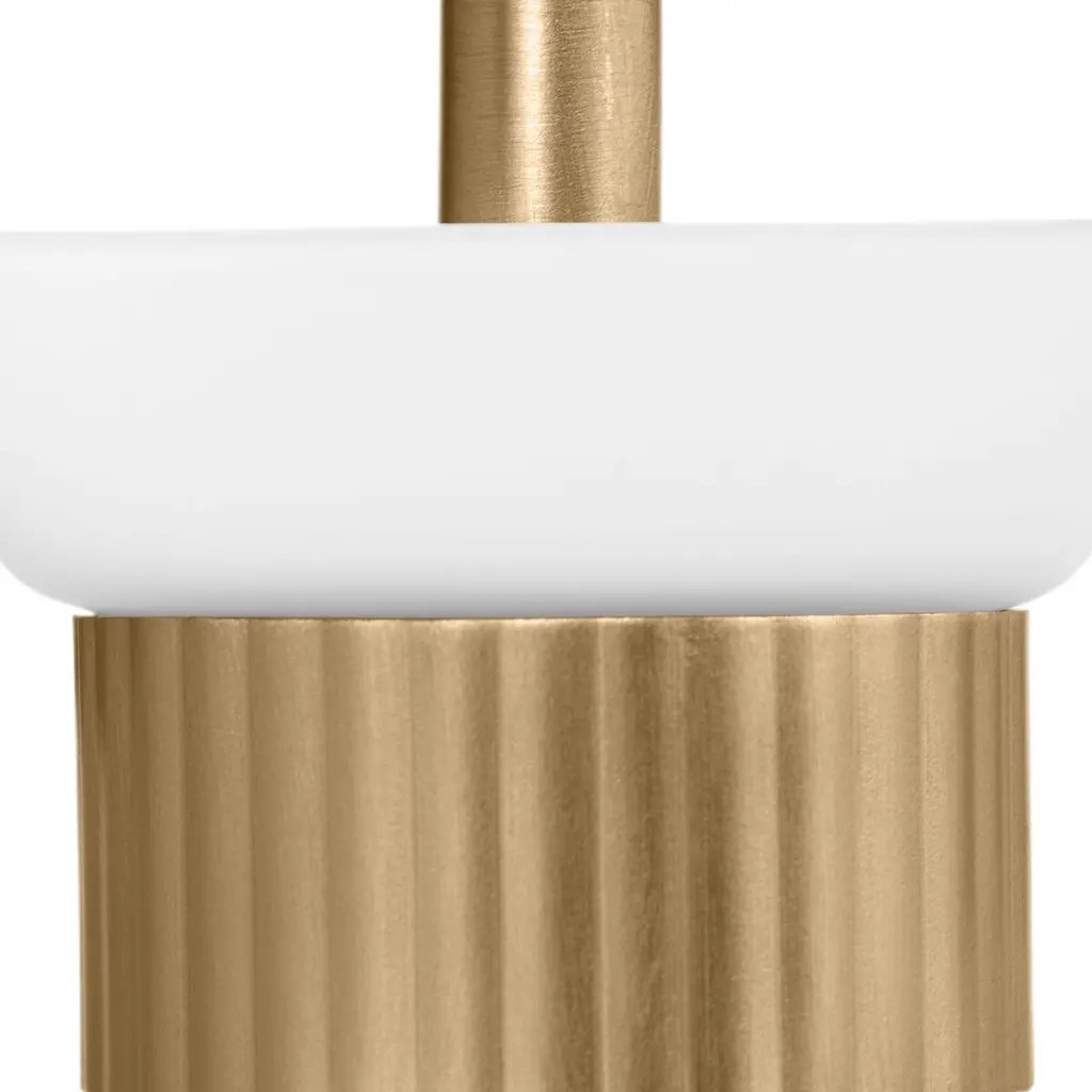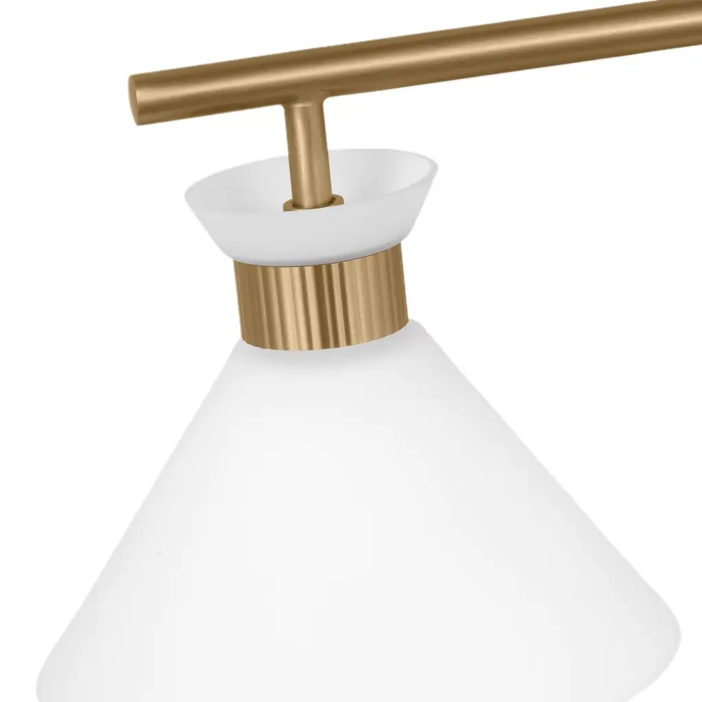 The Belcarra series is accentuated by a flared glass shade with ribbed metal details and etched white glass that bestows an almost whimsical touch to the clean design.