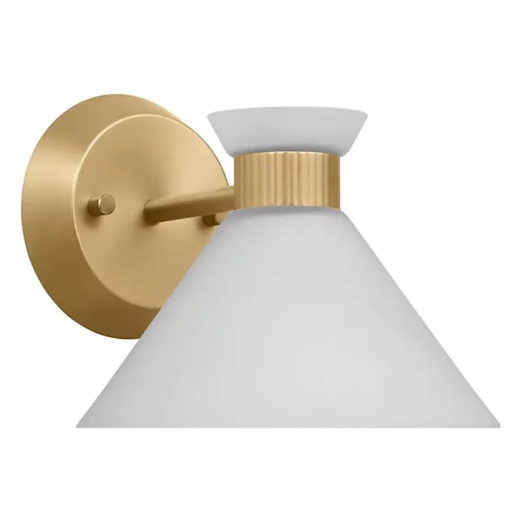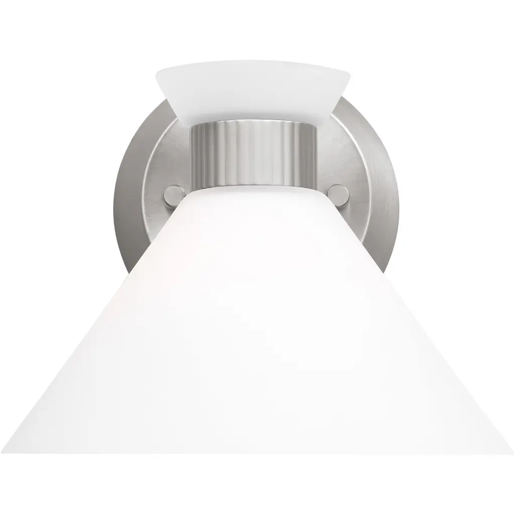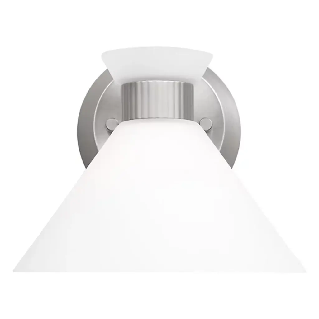 The Belcarra Wall Sconce from Visual Comfort Studio Illuminates your space in soft-spoken elegance. This transitional light fixture features a conically shaped shade of glass held by a slim steel arm. The glass shade gently tempers the LED, emitting a useful glow for hallways, bedrooms, and reading areas. A round metal backplate provides a clean point of contact with the wall. When you use an ELV dimmer, you can quickly adjust the sconce’s brightness level.