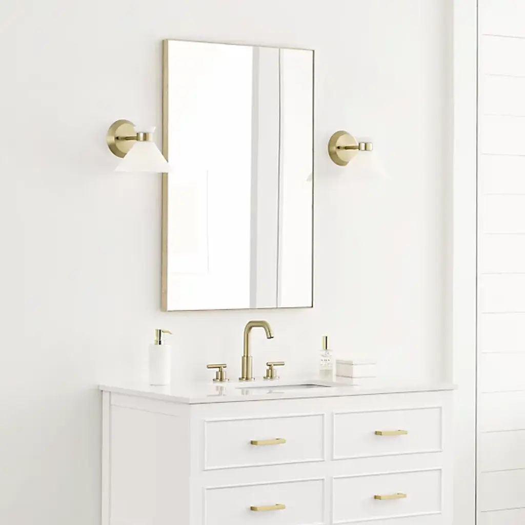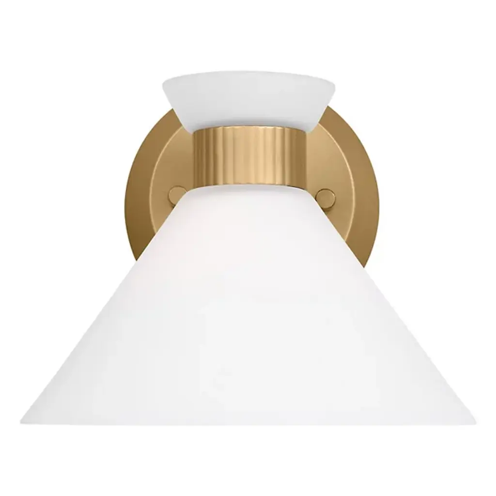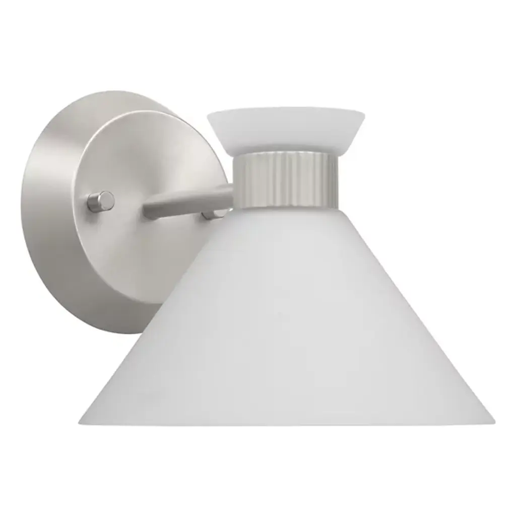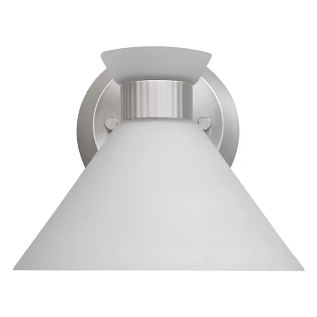 The Belcarra Wall Sconce from Visual Comfort Studio Illuminates your space in soft-spoken elegance. This transitional light fixture features a conically shaped shade of glass held by a slim steel arm. The glass shade gently tempers the LED, emitting a useful glow for hallways, bedrooms, and reading areas. A round metal backplate provides a clean point of contact with the wall. When you use an ELV dimmer, you can quickly adjust the sconce’s brightness level.
