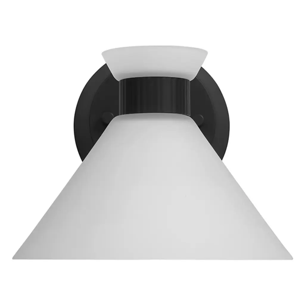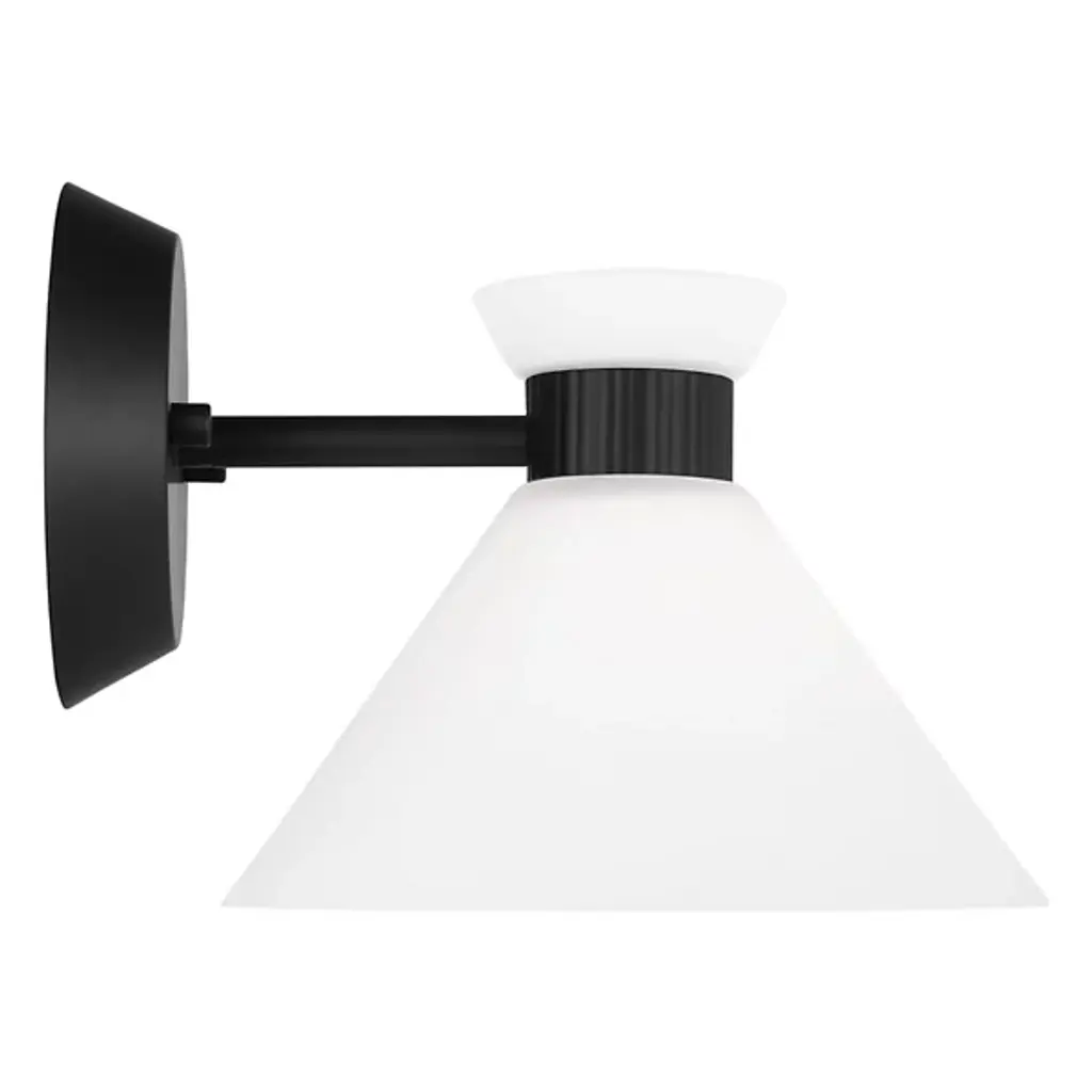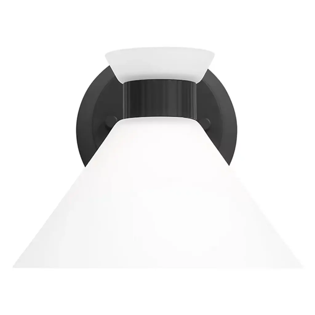The Belcarra Wall Sconce from Visual Comfort Studio Illuminates your space in soft-spoken elegance. This transitional light fixture features a conically shaped shade of glass held by a slim steel arm. The glass shade gently tempers the LED, emitting a useful glow for hallways, bedrooms, and reading areas. A round metal backplate provides a clean point of contact with the wall. When you use an ELV dimmer, you can quickly adjust the sconce’s brightness level.