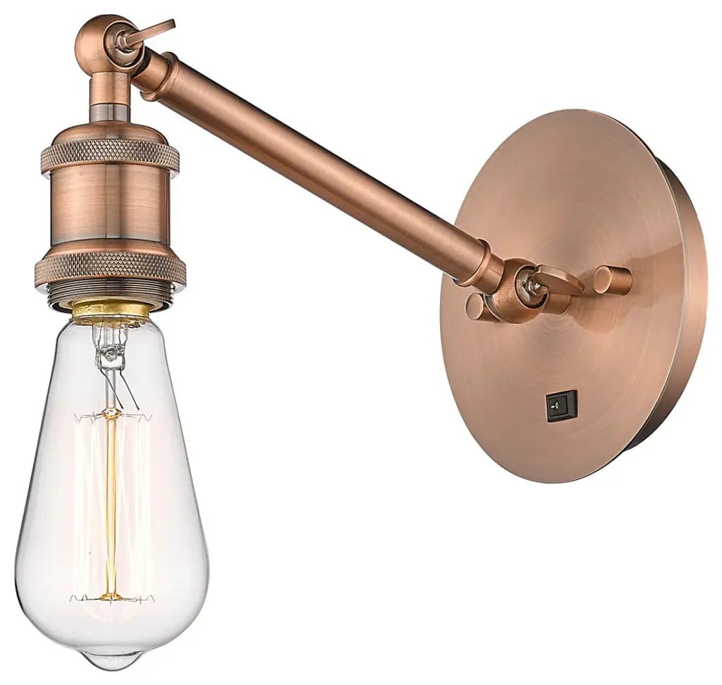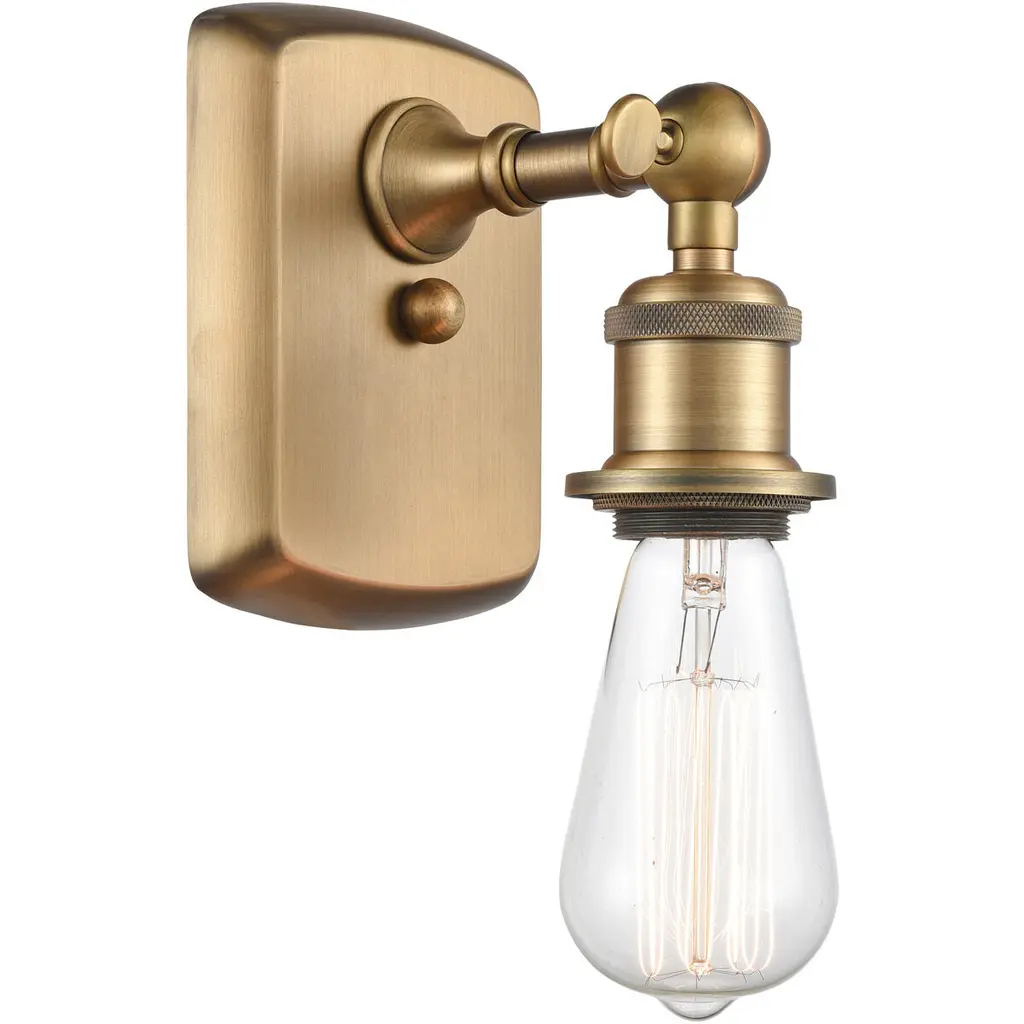 INNOVATIONS 317-1W-BB Belfast 1 Light Sconce part of the Ballston Collection Brushed Brass. Style: Industrial, Modern Contempo, Restoration-Vintage, Transitional . Collection Name: Ballston. Metal Finish(Body): Brushed Brass. Metal Finish(Canopy/Backplate): Brushed Brass. Material: Steel, Cast Brass, Glass. Dimension(in): 6.1(H) x 5.3(W) x 9.9(Ext). Bulb: (1)60W Medium Base Incandescent(Not Included). Voltage: 120. Dimmable: No. Switch Type Included: On/Off Rocker Switch. Color Temperature (Kelvin): 2200. Color Rendering Index (CRI): 99.9. Lumens: 220. Life Expectancy (Hours): 2000. Backplate Dimension(in): 5.3(Dia) x 0.75(Depth). ADA Compliant: No. California Proposition 65 Warning Required: Yes. UL/ETL Certification Type: Damp Location.