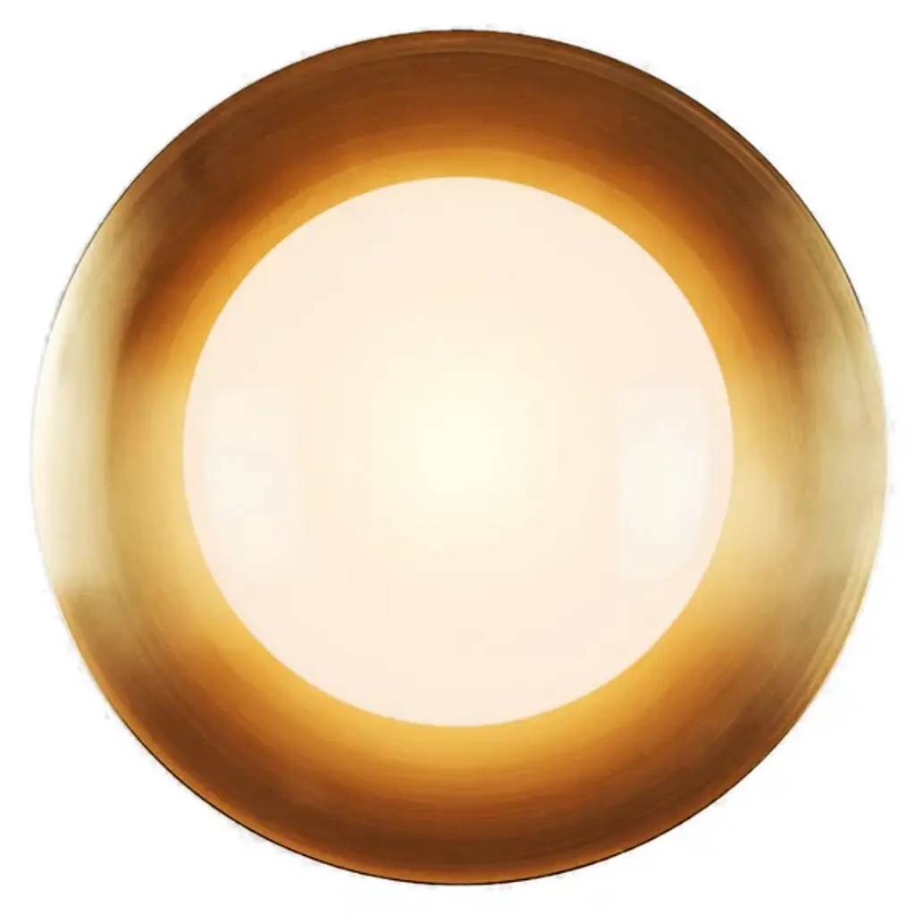 Bring the refined relaxation of a resort home with the stately and simple lines of the Bell 01 LED Wall Sconce from Roll & Hill. A fine construction starting with a brass disc, it was designed by Post Company for the Inness resort in Hudson Valley, stylishly saluting the British Bell Jar Lantern of yesteryear. A flaring opal glass diffuser extends from the center of the wall plate, adding a touch of sculpture and depth, contrasting with the smooth brass behind it as it dispenses restrained warmth around it.