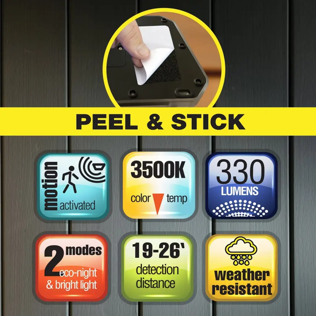 Illuminate your outdoor spaces with the Bell + Howell Bionic Wall Lights – premium solar-powered motion-activated LED lights designed for safety, style, and ease. Featuring 330 lumens of bright LED illumination and a warm 3500 Kelvin color temperature, these lights activate automatically within a 19–26 ft range and stay on for 25 seconds per motion event. With easy peel-and-stick or hardware mounting, these weather-resistant lights are perfect for brightening sheds, garages, walkways, and more—without any wiring or electricity. Ideal for eco-conscious households, the Bionic Wall Light offers two modes: an energy-saving eco-night setting and a powerful bright-light option. Perfect for homeowners looking for easy-to-install, reliable security lighting that blends functionality and design.