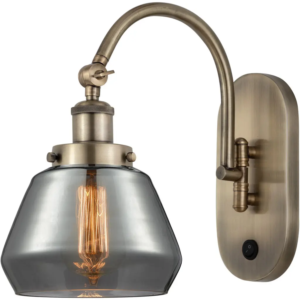 One of our largest and original collections, the Franklin Restoration is made up of a vast selection of heavy metal finishes and a large array of metal and glass shades that bring a touch of industrial into your home.Features:Solid brass 180 degree adjustable swivels with internal teeth that lock in at 5 degree intervalsFixture can be hung with bulbs facing up or down as a wall mount or facing down as a ceiling mount7.875" x 4.5" 2mm heavy cast backplateDistance from outlet opening to top of fixture 7.06 inchesRated for 100 watt maximumUL/CUL Damp RatedCompatible with Incandescent, LED, Fluorescent and Halogen bulbsThe arm swivels side to side at the baseNumber of Bulbs: 1Bulb Wattage: 3.5Bulb Type: LEDBulb Included: IncludedVoltage: 120Finish: Antique Brass Finish Shade Finish: Plated Smoke Shade.