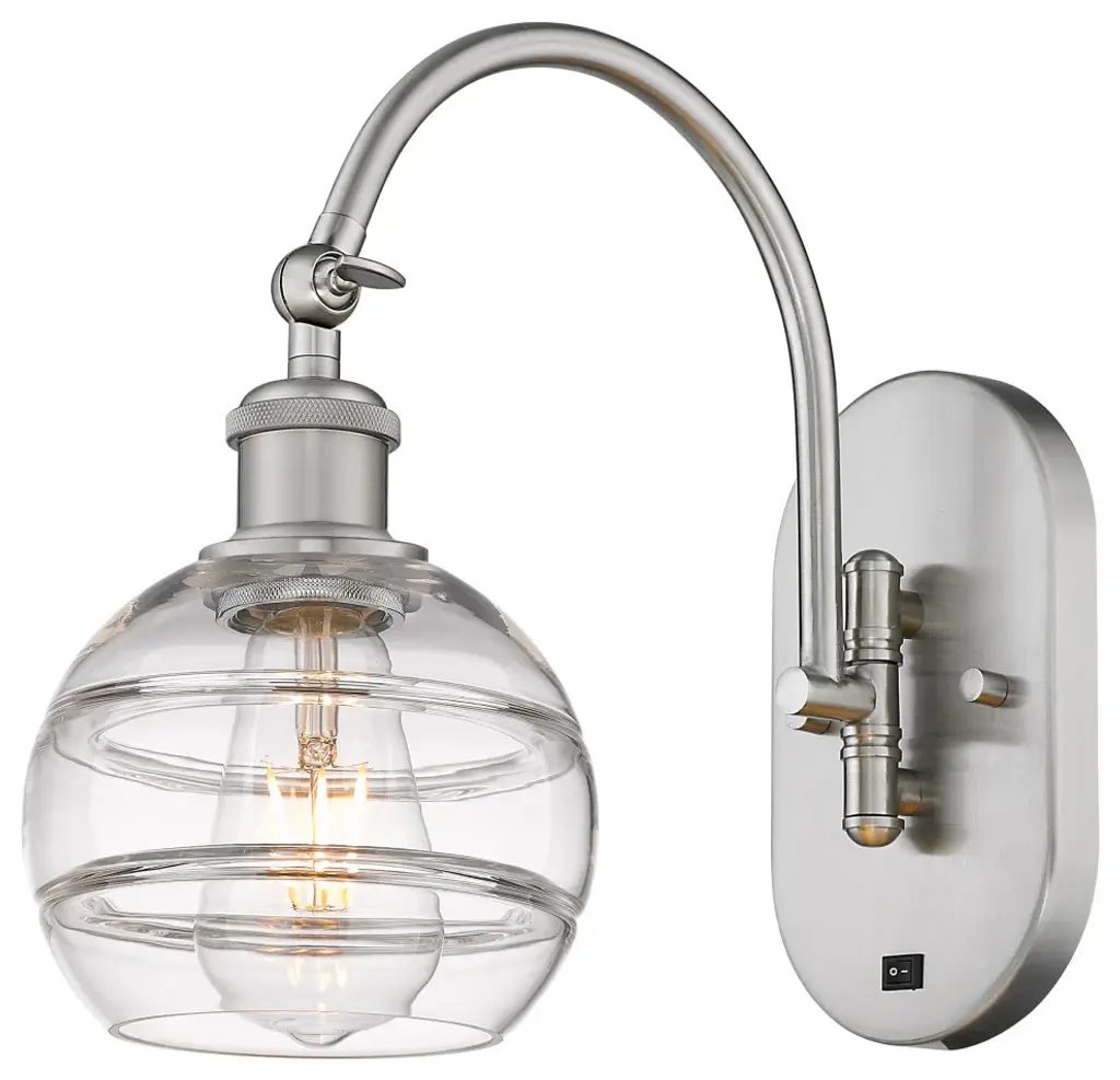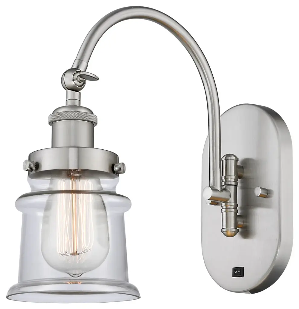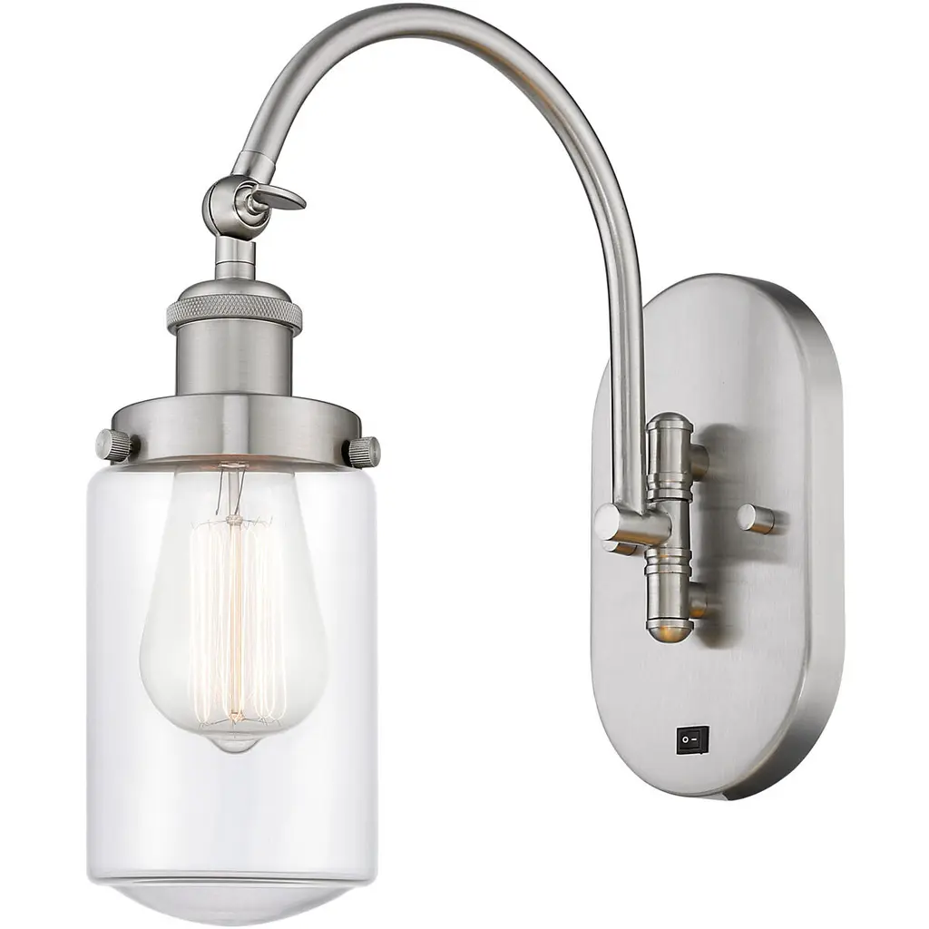 One of our largest and original collections, the Franklin Restoration is made up of a vast selection of heavy metal finishes and a large array of metal and glass shades that bring a touch of industrial into your home.Features:Solid brass 180 degree adjustable swivels with internal teeth that lock in at 5 degree intervalsFixture can be hung with bulbs facing up or down as a wall mount or facing down as a ceiling mount7.875" x 4.5" 2mm heavy cast backplateDistance from outlet opening to top of fixture 7.06 inchesRated for 100 watt maximumUL/CUL Damp RatedCompatible with Incandescent, LED, Fluorescent and Halogen bulbsThe arm swivels side to side at the baseNumber of Bulbs: 1Bulb Wattage: 60Bulb Type: IncandescentBulb Included: Not IncludedVoltage: 120Finish: Brushed Satin Nickel Finish Shade Finish: Clear Shade