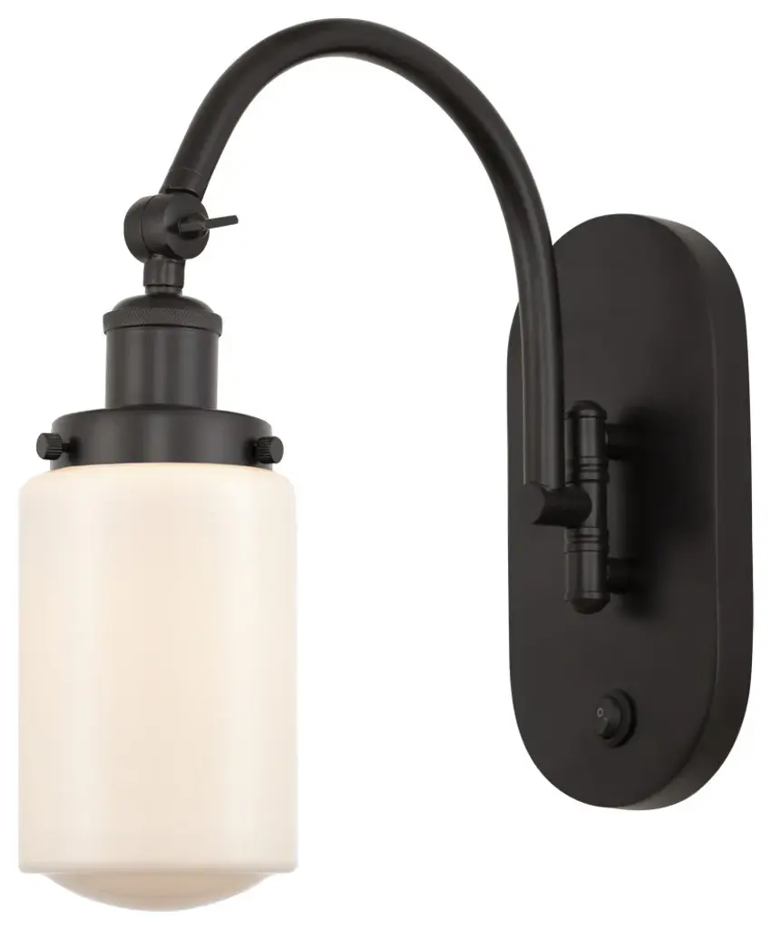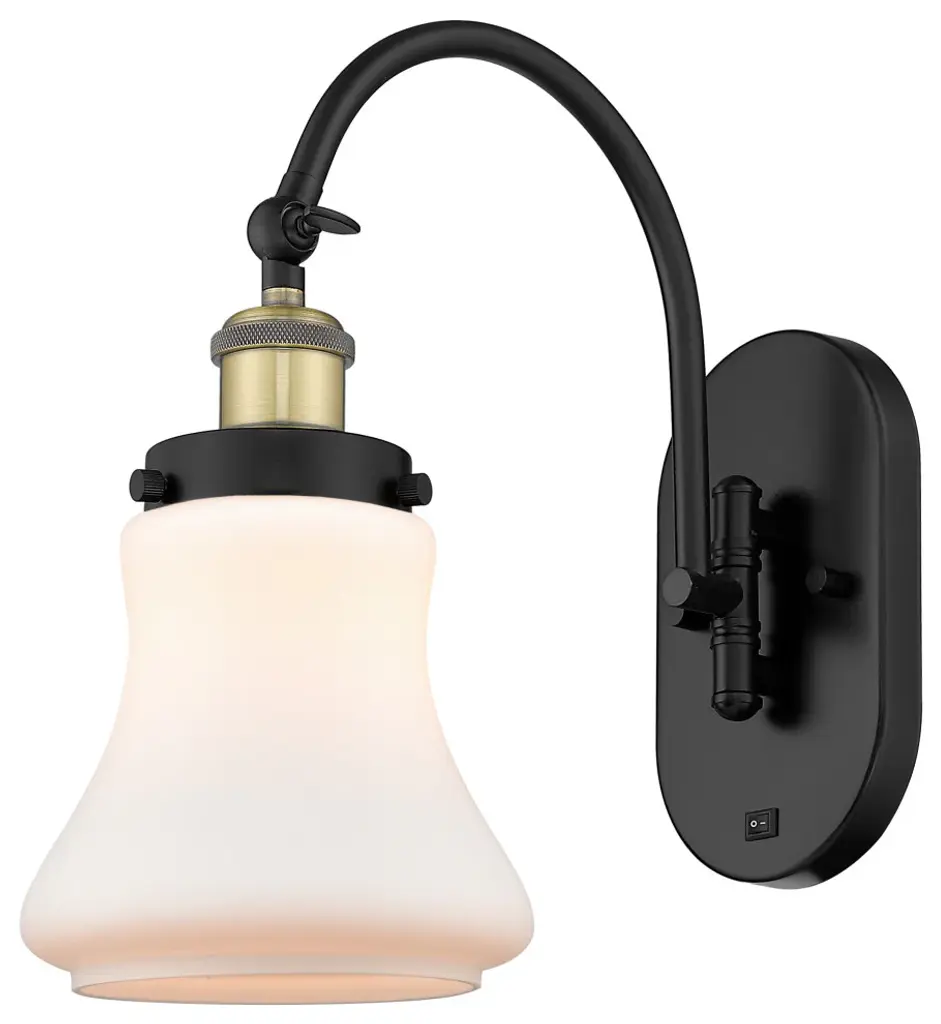 One of our largest and original collections, the Franklin Restoration is made up of a vast selection of heavy metal finishes and a large array of metal and glass shades that bring a touch of industrial into your home.Features:Solid brass 180 degree adjustable swivels with internal teeth that lock in at 5 degree intervalsFixture can be hung with bulbs facing up or down as a wall mount or facing down as a ceiling mount7.875" x 4.5" 2mm heavy cast backplateDistance from outlet opening to top of fixture 7.06 inchesRated for 100 watt maximumUL/CUL Damp RatedCompatible with Incandescent, LED, Fluorescent and Halogen bulbsThe arm swivels side to side at the baseNumber of Bulbs: 1Bulb Wattage: 60Bulb Type: IncandescentBulb Included: Not IncludedVoltage: 120Finish: Matte Black Finish Shade Finish: Matte White Shade