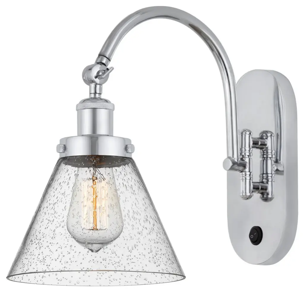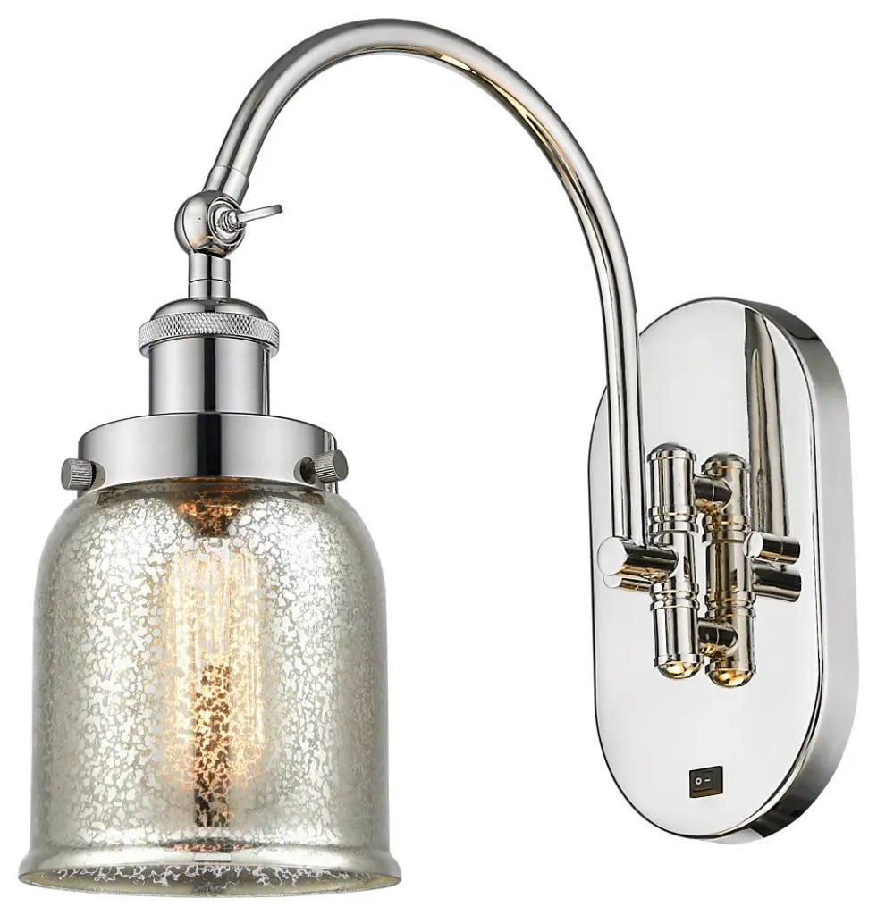 One of our largest and original collections, the Franklin Restoration is made up of a vast selection of heavy metal finishes and a large array of metal and glass shades that bring a touch of industrial into your home.Features:Solid brass 180 degree adjustable swivels with internal teeth that lock in at 5 degree intervalsFixture can be hung with bulbs facing up or down as a wall mount or facing down as a ceiling mount7.875" x 4.5" 2mm heavy cast backplateDistance from outlet opening to top of fixture 7.06 inchesRated for 100 watt maximumUL/CUL Damp RatedSilver plated mercury glass is a sparkling combination of black and grey "grit" particles infused together in a clear glass while hand-blown for a mid-century lookCompatible with Incandescent, LED, Fluorescent and Halogen bulbsThe arm swivels side to side at the baseNumber of Bulbs: 1Bulb Wattage: 60Bulb Type: IncandescentBulb Included: Not IncludedVoltage: 120Finish: Polished Chrome Finish Shade Finish: Silver Plated Mercury Shade
