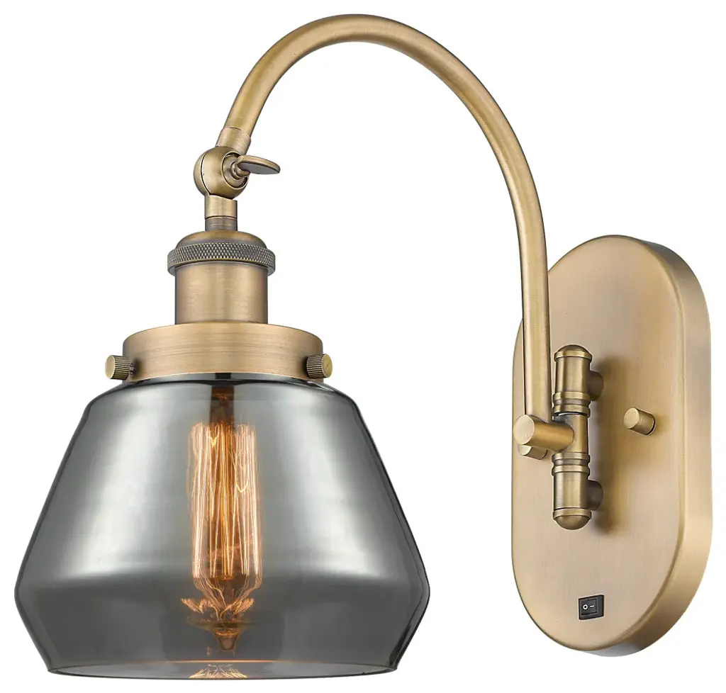 One of our largest and original collections, the Franklin Restoration is made up of a vast selection of heavy metal finishes and a large array of metal and glass shades that bring a touch of industrial into your home.Features:Solid brass 180 degree adjustable swivels with internal teeth that lock in at 5 degree intervalsFixture can be hung with bulbs facing up or down as a wall mount or facing down as a ceiling mount7.875" x 4.5" 2mm heavy cast backplateDistance from outlet opening to top of fixture 7.06 inchesRated for 100 watt maximumUL/CUL Damp RatedCompatible with Incandescent, LED, Fluorescent and Halogen bulbsThe arm swivels side to side at the baseNumber of Bulbs: 1Bulb Wattage: 3.5Bulb Type: LEDBulb Included: IncludedVoltage: 120Finish: Satin Gold Finish Shade Finish: Plated Smoke Shade