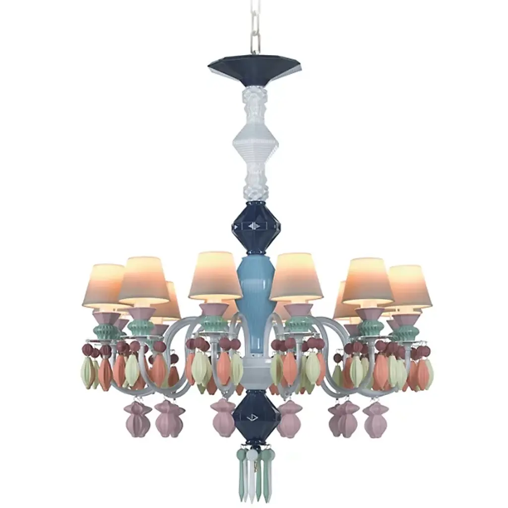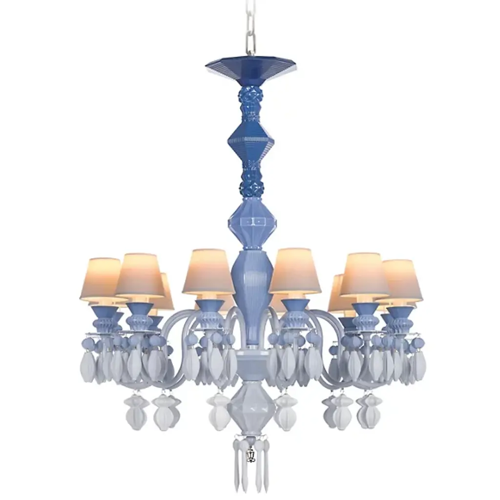 The Belle de Nuit Wall Sconce by Lladro was named and inspired by a species of striking plant whose petals appear to glow in the night as they reflect the moonlight. With a decorative back mirror, this design features a set of pleated, porcelain shades that come to life when illuminated, highlighting the rest of the porcelain construction below it. Gracefully curved arms feature decorative porcelain accents and the structure below each shade have their own sculptural, textural build that is dressed up with beautiful finishes for a dynamic touch.