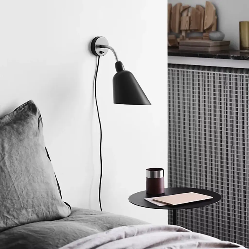 Elegant and iconic. The Bellevue Plug-In Wall Sconce by &Tradition is an update on an easily recognizable 1929 design by architect and industrial designer, Arne Jacobsen. Featuring a signature element found throughout many of his designs, a 45-degree shade is artfully spun from a single piece of metal for a sculptural and simplified silhouette. Inspired by Bauhaus style and a minimalistic movement, this piece was named after some of Jacobsen’s early architectural achievements and embodies a less-is-more mindset with its clean and graceful lines.