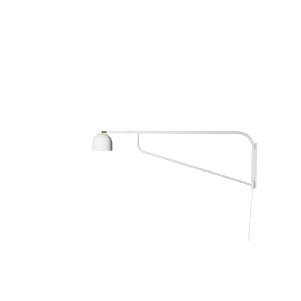 Pholc’s Bellman wall lamp, designed by Swedish Sabina Grubbeson, features a bell-shaped shade and a clean-lined steel arm that rotates 180 degrees on the wall mount. Bellman lamp is suitable to various uses and spaces not only due to its minimal design but also to its technical features: the length of the arm is adjustable, and the light can be directed by tilting the shade. The brass end of the arm creates a beautiful contrast to the otherwise monochrome lamp.