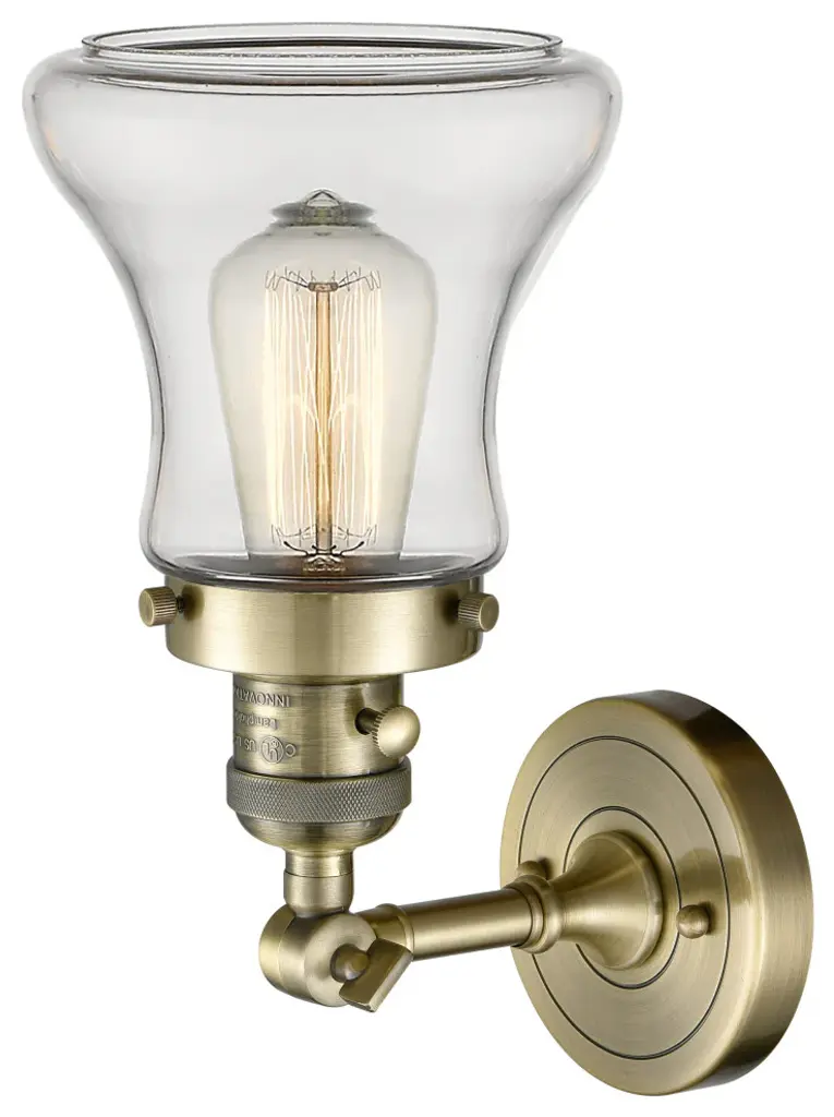 Bellmont Sconce With High-Low-Off Switch, Antique Brass, Glass: Clear